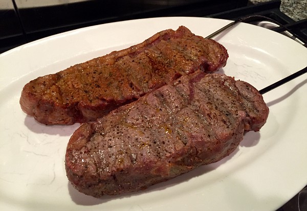 I seasoned one steak with fresh ground pepper and kosher salt. The other one got some Penzey’s Mitchell Street seasoning. I’ve never tried it, but I like a lot of their stuff so figured it’d be okay.