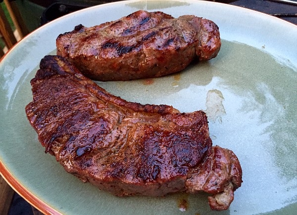 They came out great. I’d say one was a perfect MR and one was M (I know they both look medium in the cell phone pic, but one was MR). While they were both excellent, the one with just S&P was better. The rub was just not needed and took away from the steak a bit. I had 4 small chunks of pecan in there which were delightful for me, but I think next time I’ll just put one chunk in so it doesn't overpower SWMBO.