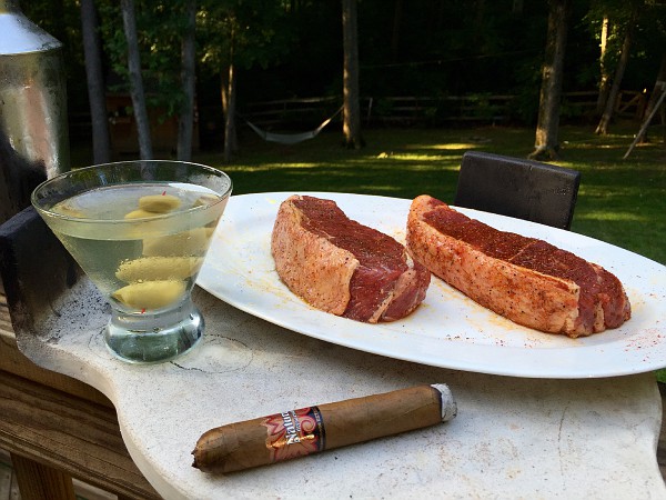 I wasn’t varying from the technique talked about here in the past. I was going for 115 IT indirect at 250, remove the plate setter and crank the heat to 500ish, and then sear for 60-90 seconds per side. I like a MR steak…or <gasp> sometimes a little medium. Let’s see how I do…