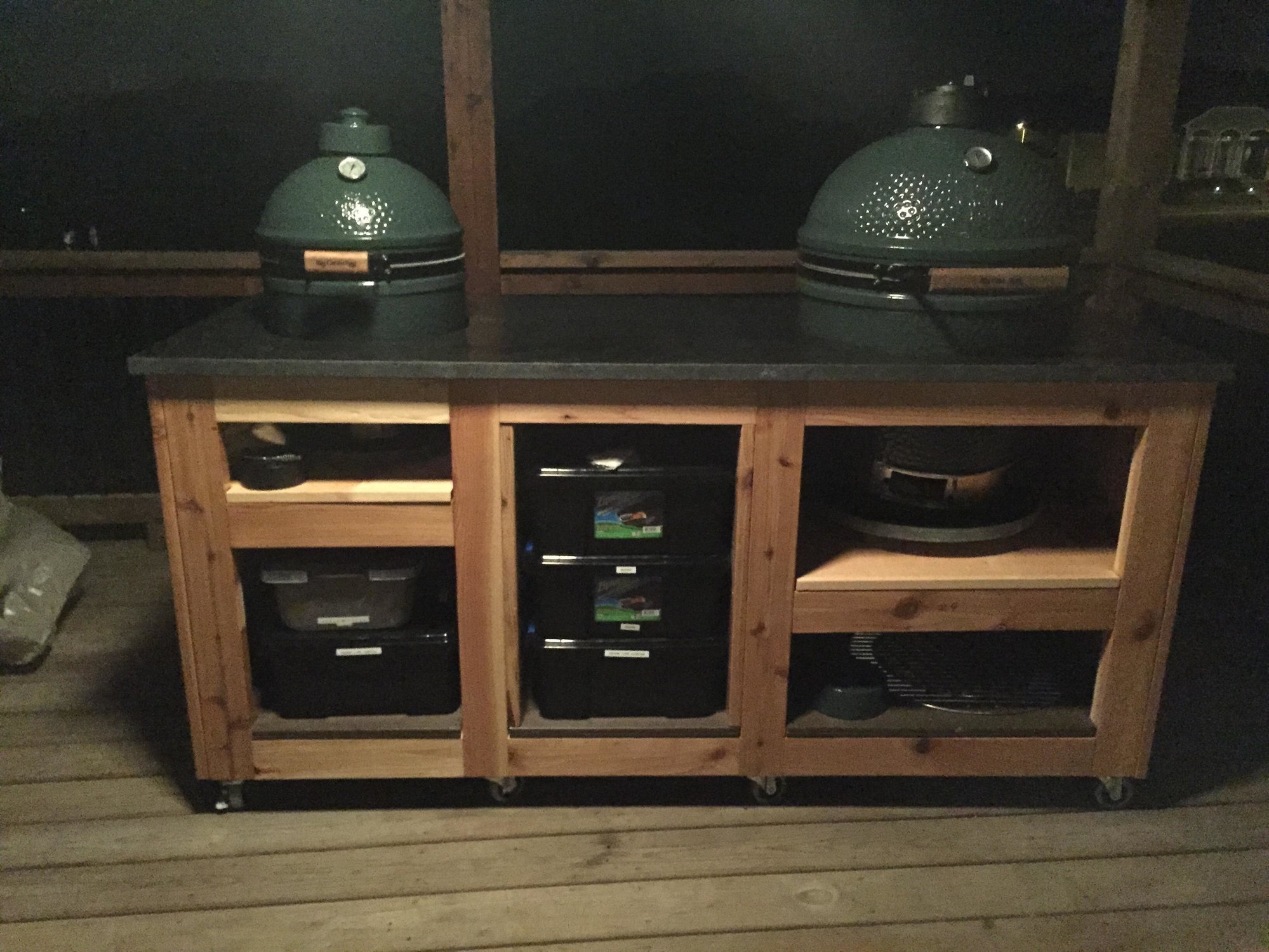 Several weeks ago, I built my dual BGE table. Last weekend, I purchased a small & large BGE. I have zero grilling experience outside the normal gas grill, a few burgers and etc. I'm starting this new hobby and figure I might as well do it right. Any advice would be greatly appreciated. I've already got a igrill2 with a pro ambient probe & Dutch Oven on order.