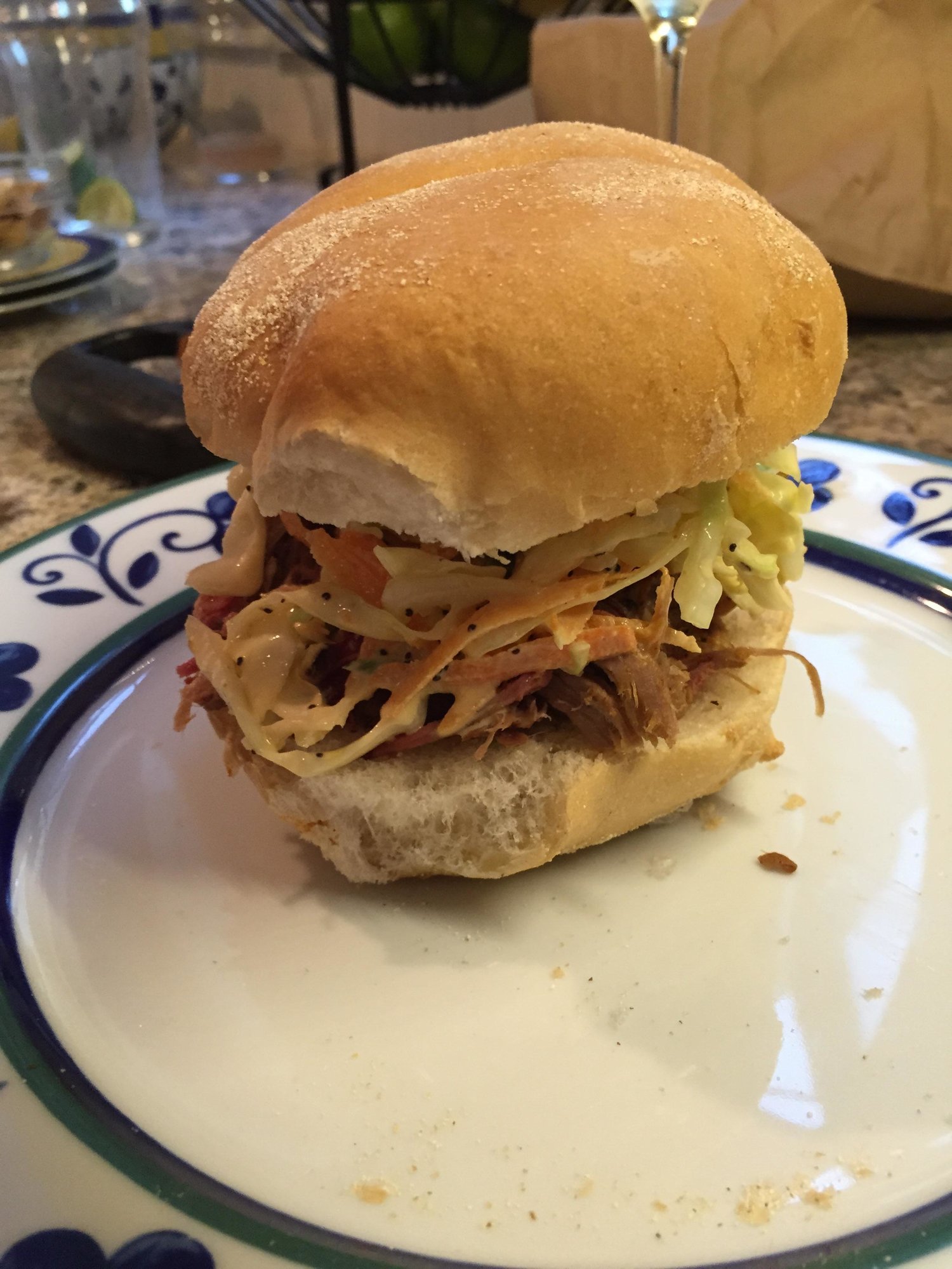 Pulled it about an hour and a half later- temp was still about 175. I thought the bark stayed crunchy this way but it did seem a bit dried out and I'm not sure why? It was a pretty lean shoulder or maybe I should've wrapped it tightly when I was holding it? Forgot also that my rub didn't have salt in it as I salted separately last time- maybe that had something to do with it? The Sheboygan hard rolls made it worthwhile though.