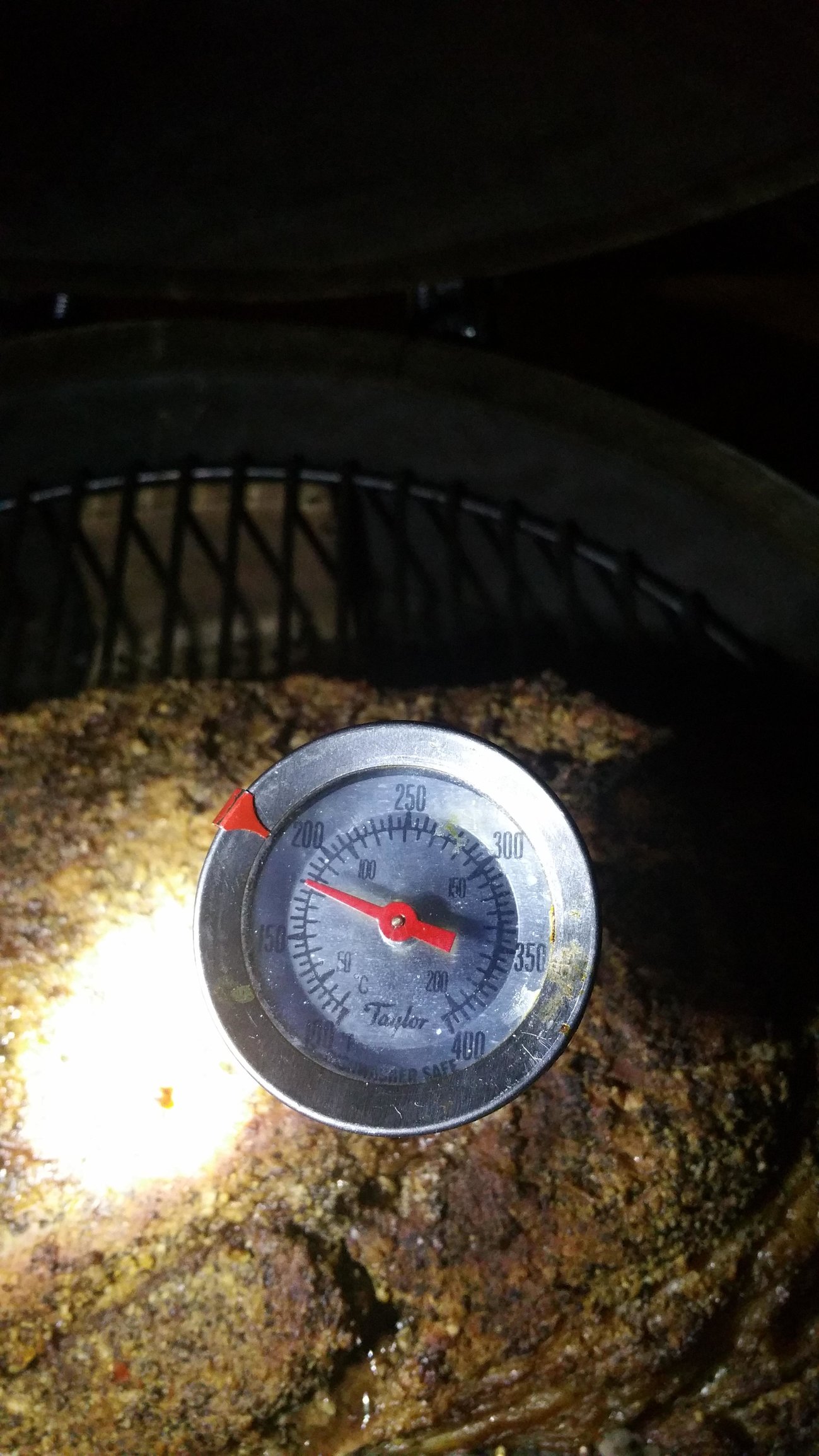 Cooking time is of no issue. So What I will do is let it ride another hour then check it again. The Thermo went in pretty easy. I I guess once the point hits about 200 I will pull it and wrap it. Should I toss it in a cooler? Let it rest for what another hour before making breakfast at midnight? lol Or let it rest till 3:30-4am ish?