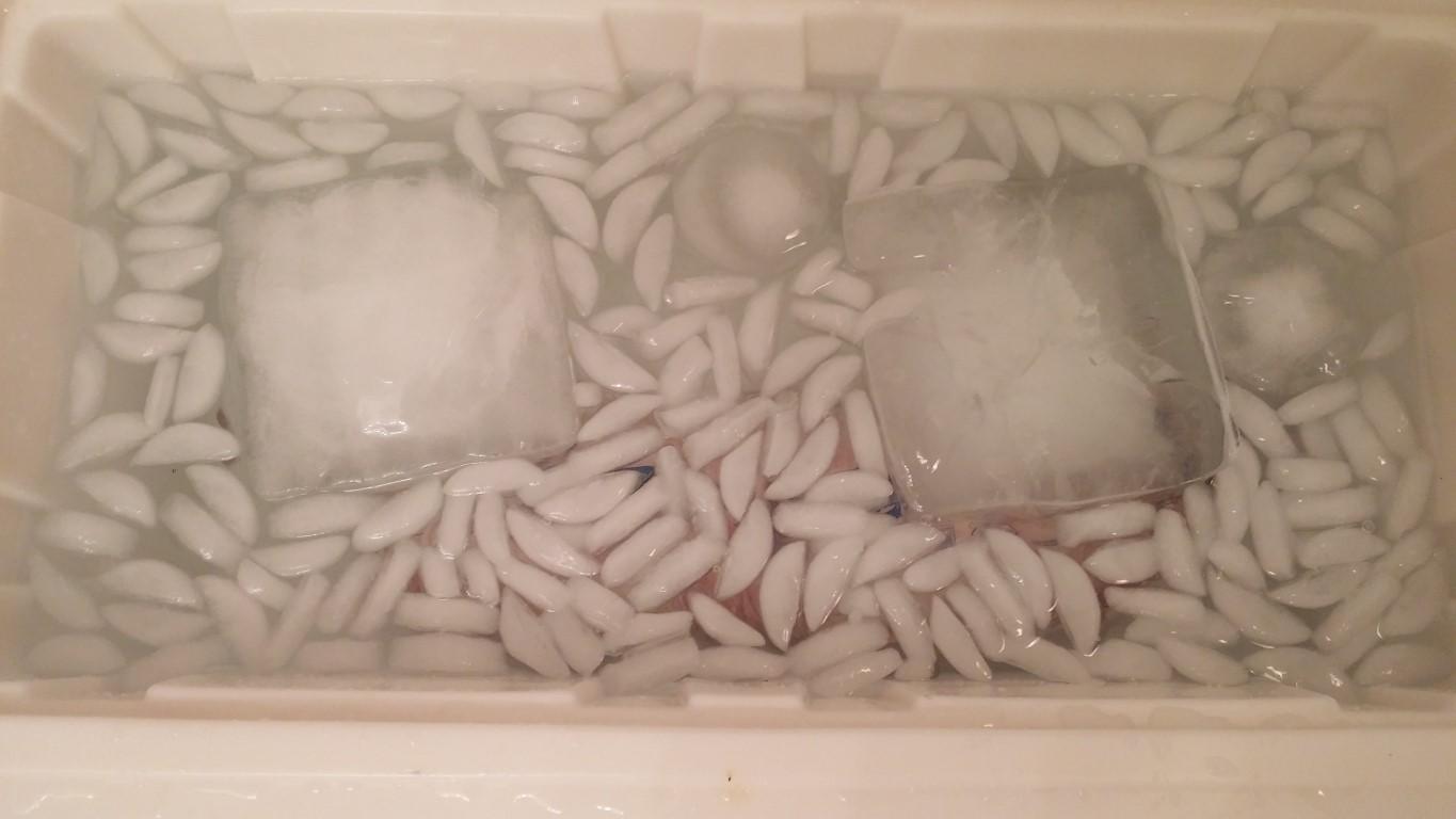 A Pelican 65 filled with ice water overnight.