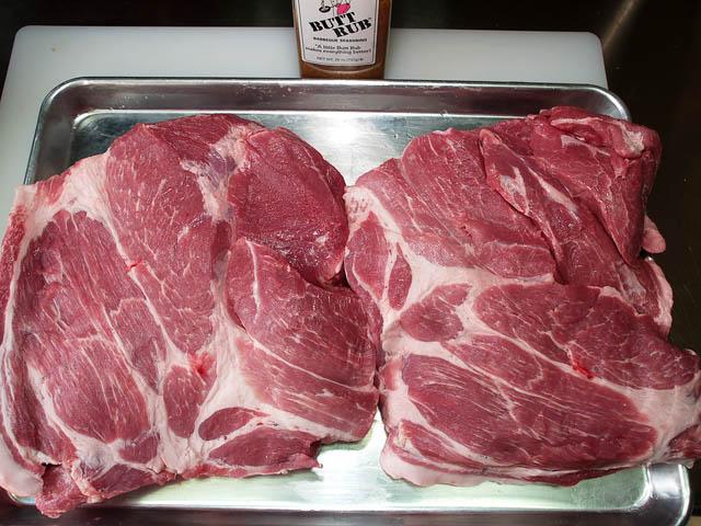 Bought a nice boneless butt, cut in half, seasoned with Bryons on all sides