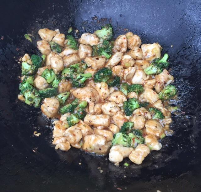 Added green onions,garlic and ginger for a quick stir then everything goes back in with the sauce