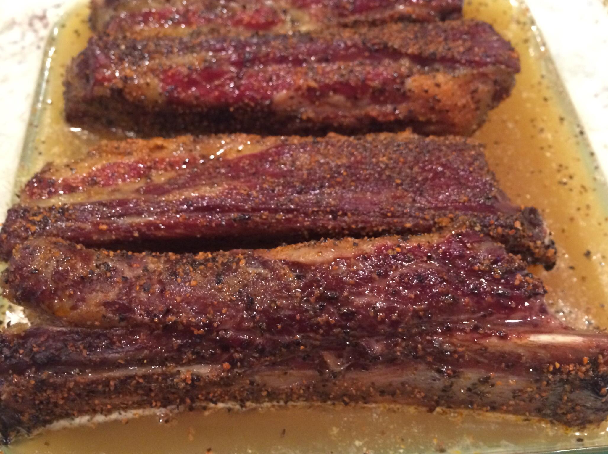 I've been seeing a lot of beef ribs on here lately so that is what was on the agenda today. Started out with some local grass fed shorties rubbed with Holy Cow.