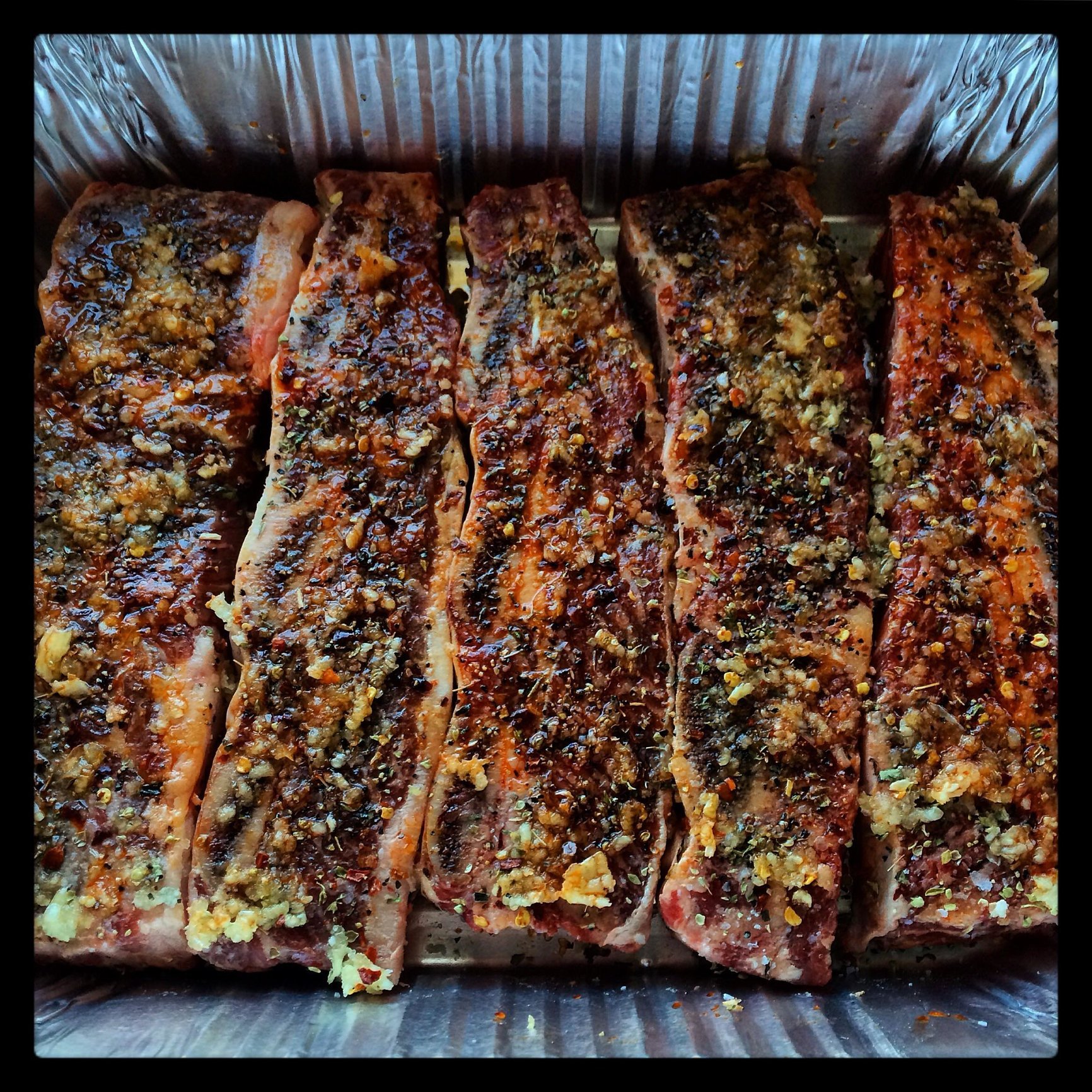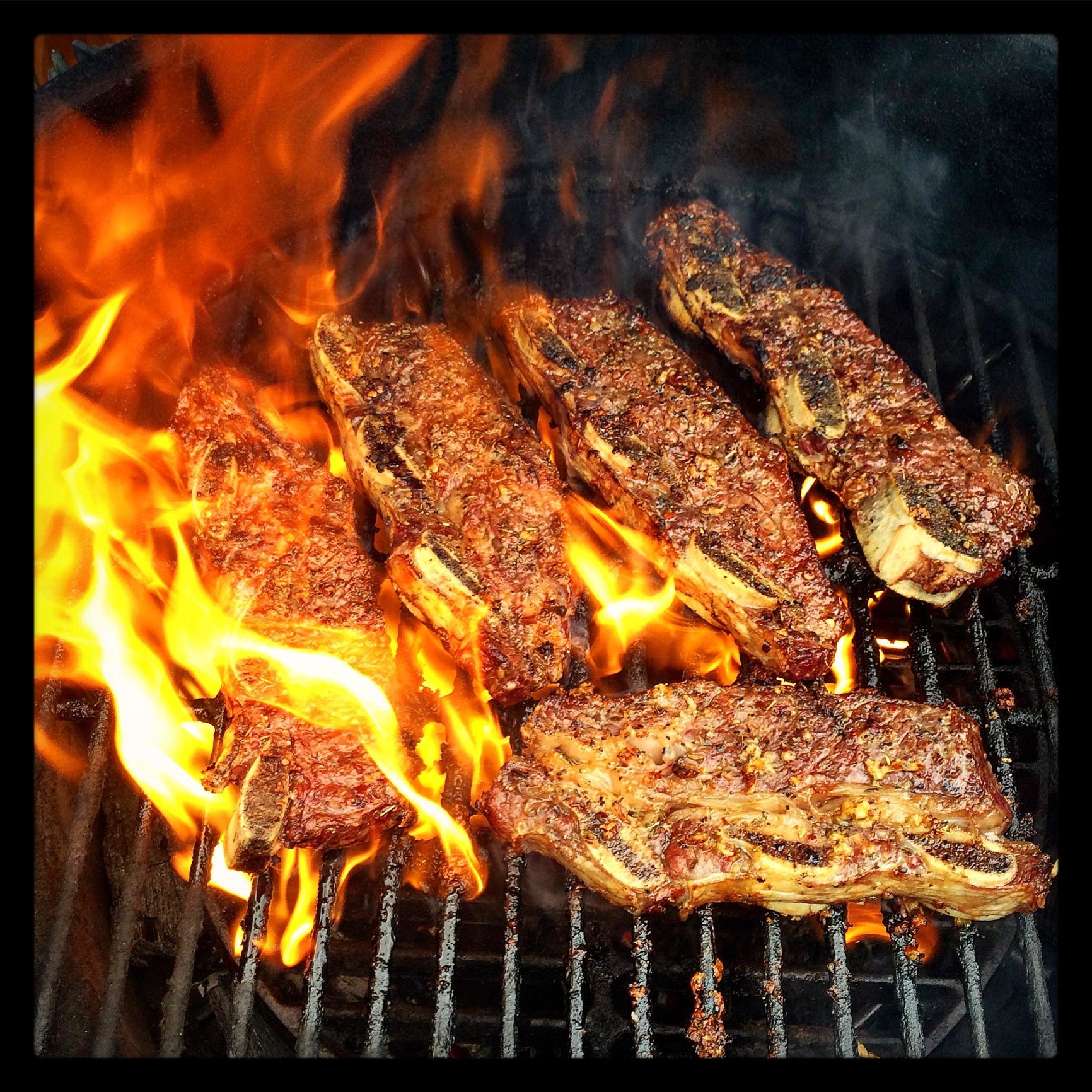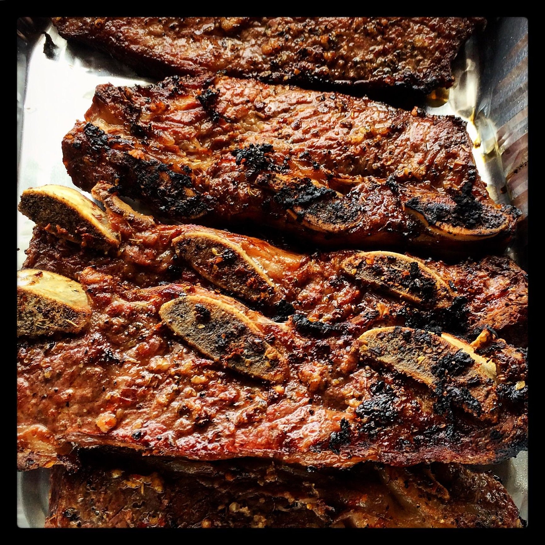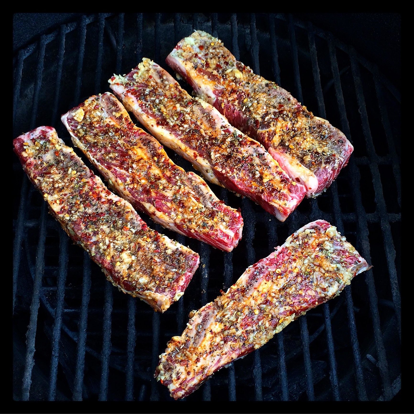 Picked up some flanken ribs to do first, have them marinating now in a modified version of Raichlen's recipe. Used salt, pepper, oregano, fresh garlic, and some hot chili pepper olive oil... Going to do them at high heat like a steak on the grate. Also picked up some chicken kabobs for the girls and a nice ribeye for me which I am going to do on a cedar plank just to give it a shot..