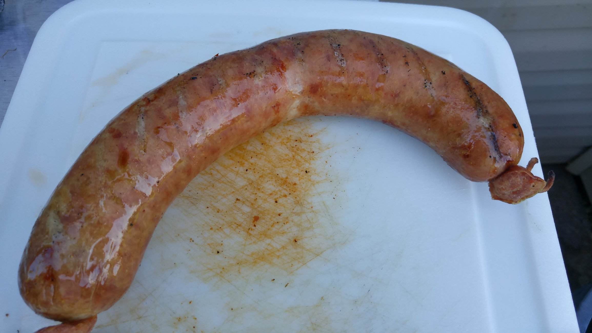 Right I have one bologna, fresh kielbasa and meatloaf wrapped with prosciutto and pancetta for tonight's dinner. Peppers and onions getting added later.