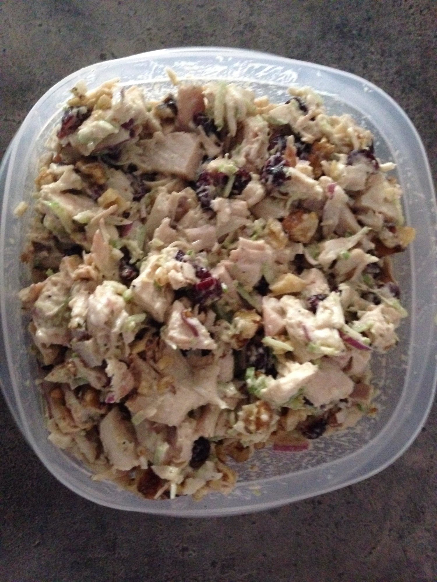 @YukonRon, I don't follow a particular recipe but that one hade some chopped celery and red onion, craisins, chopped walnuts, mayonaise and a little sesame seed oil and s&p---------------------------------------------------------------------------------Well, "spa-Peggy" is kind of like spaghetti. I'm not sure what Peggy does different, if anything. But it's the one dish she's kind of made her own.____________________Aurora, Ontario, Canada