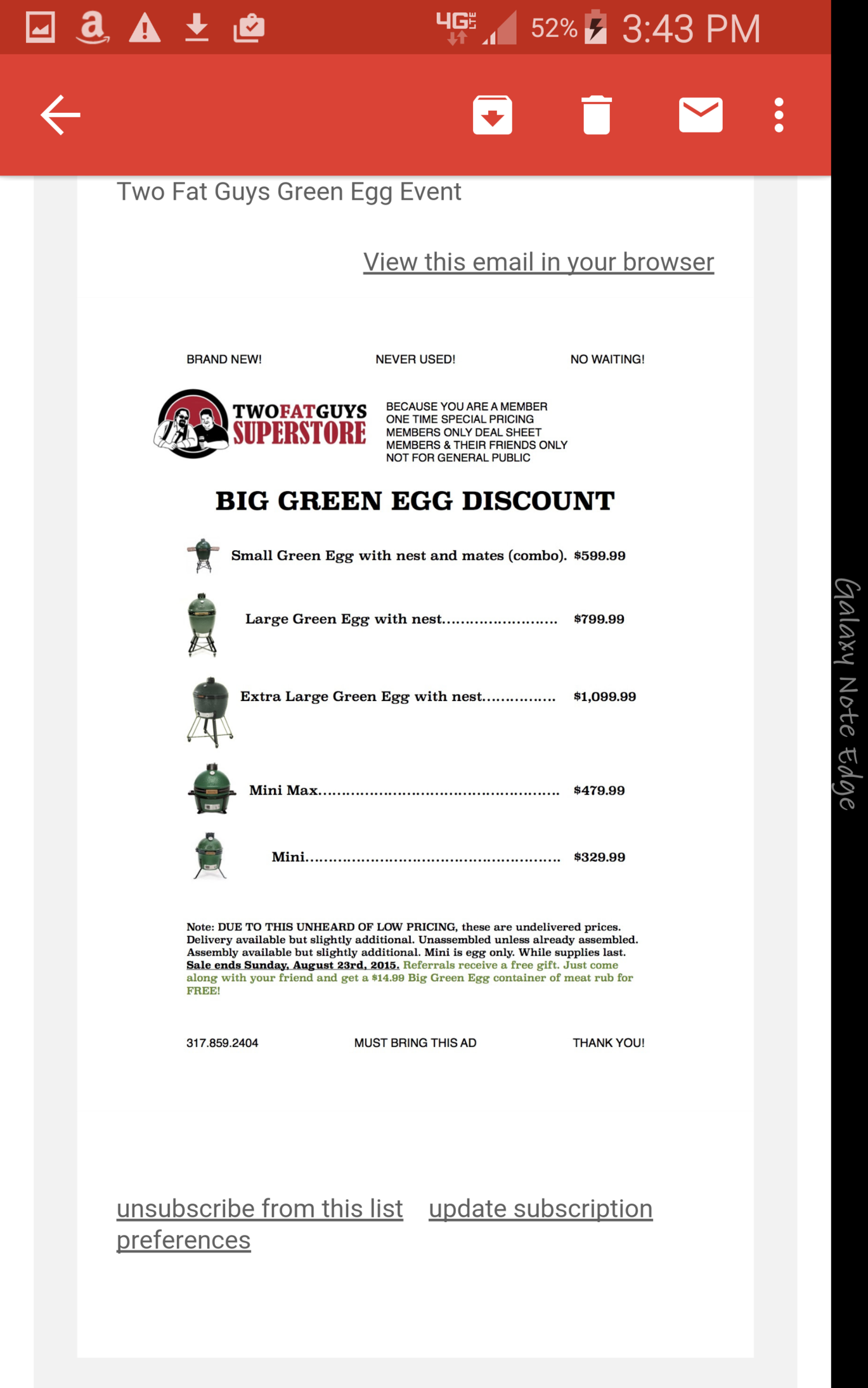 Our store sells BGE so I get them at cost. My MM was 360 and the large will be 570 when I get it. Just a little braggin