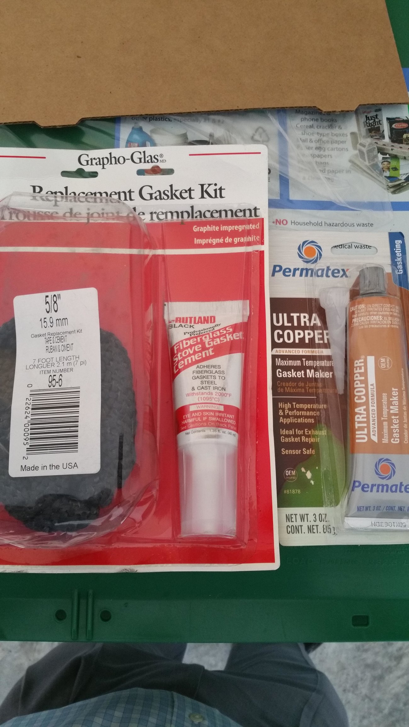 Looks like a rutland gasket and looks like the right copper sealant stuff. Just throw the glue that came with it away.  Basically you just want to clean the surface off on your egg. Only do the bottom. Start in the back and bunch up the material as much as possible when you put it down. That will give it a nice cushion and make for the best seal when finished.