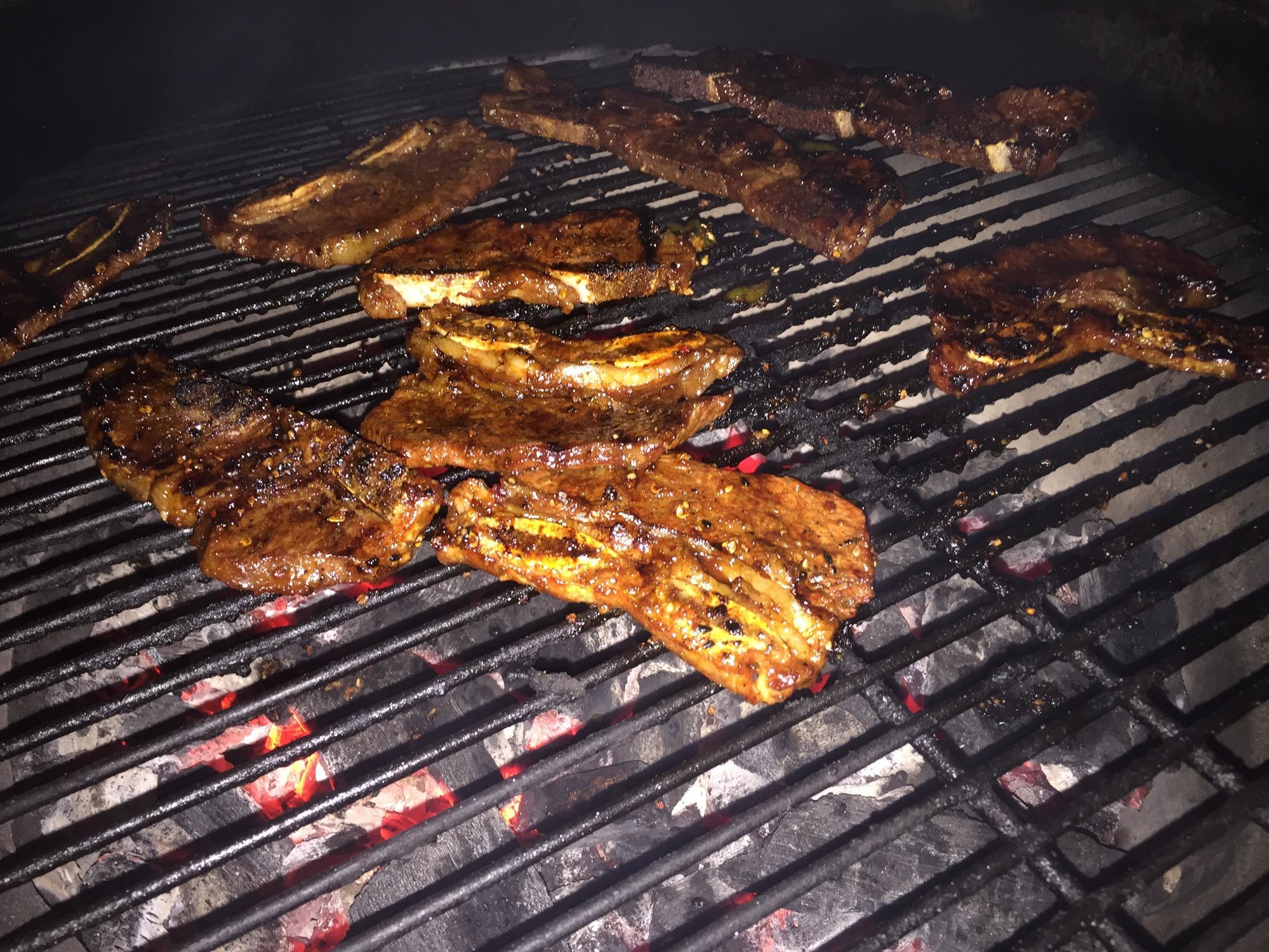 I also picked up some kalbi-style short ribs and marinated all day in a mixture of stuff - gochujang, soy, rice vinegar, sesame oil, lime juice, red pepper, sliced jalapeño, etc. First time cooking these ribs, with the generous marbling, I went hot and fast at approx 500 flipping often knowing they wouldn't dry out. Wow. I need to buy these again. Amazing. Would love to use these for tacos.