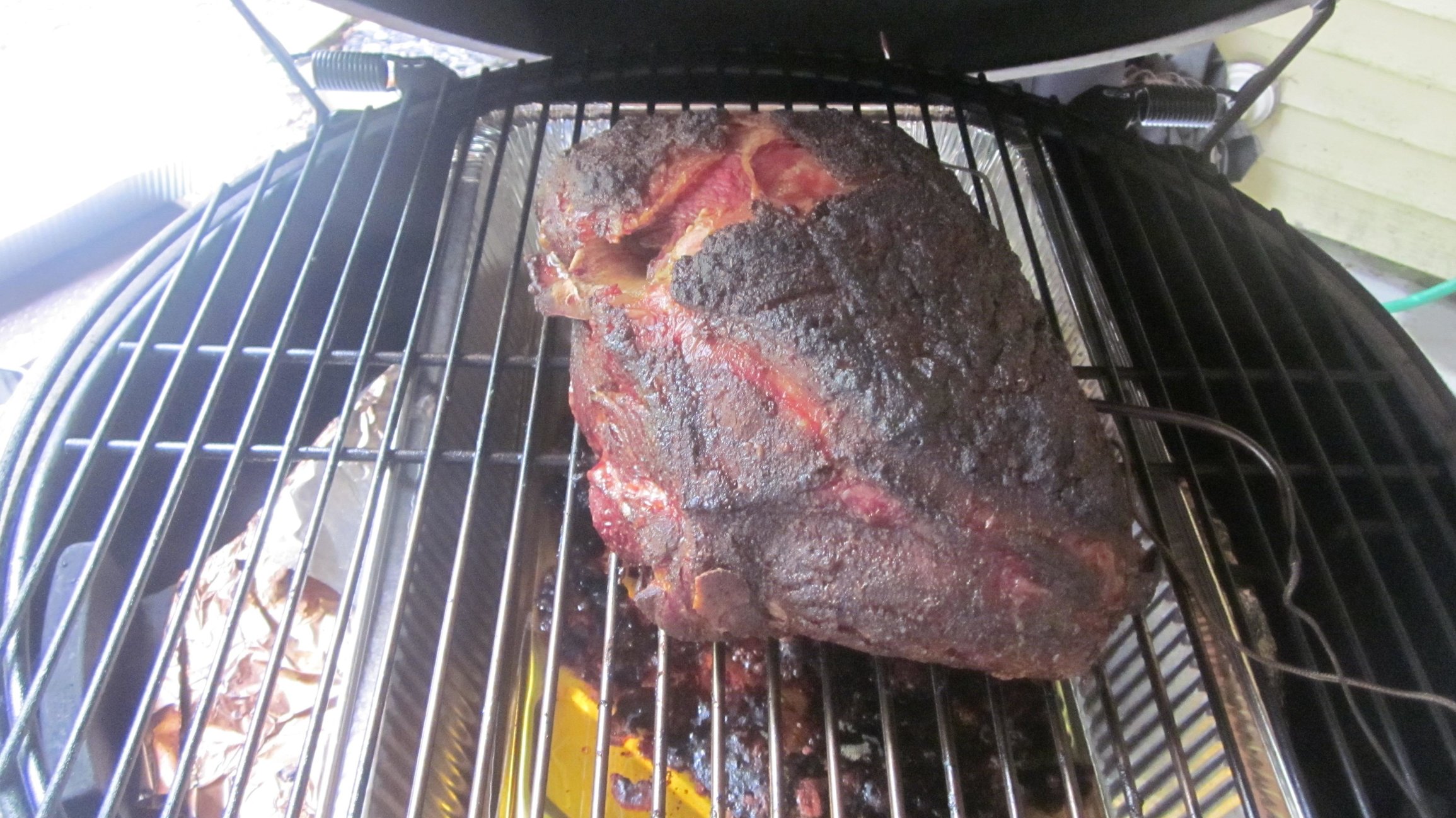 Put a 9 pounder on this morning at zero-dark-thirty. Rubbed with mustard and McCormicks Memphis Pit. Going with 275 over some apple wood smoke and planning to FTC it a couple of hours before I pull it apart. Going to be some good eats today!  :)