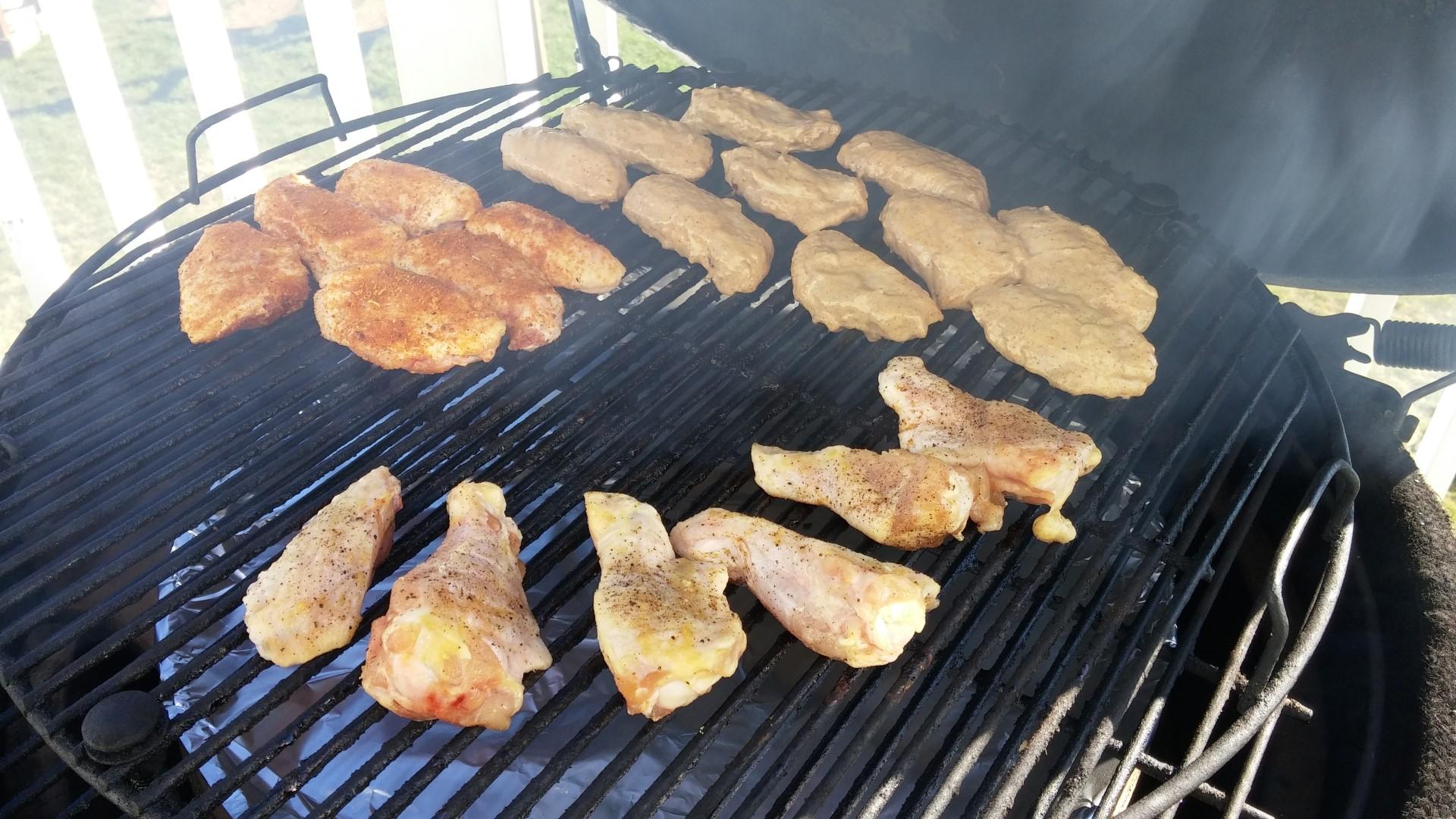 3 kinds, buffalo, dry rub BBQ with Meadow Creek Gourmet rub, and used marinade I had leftover from last nights cauliflower:
