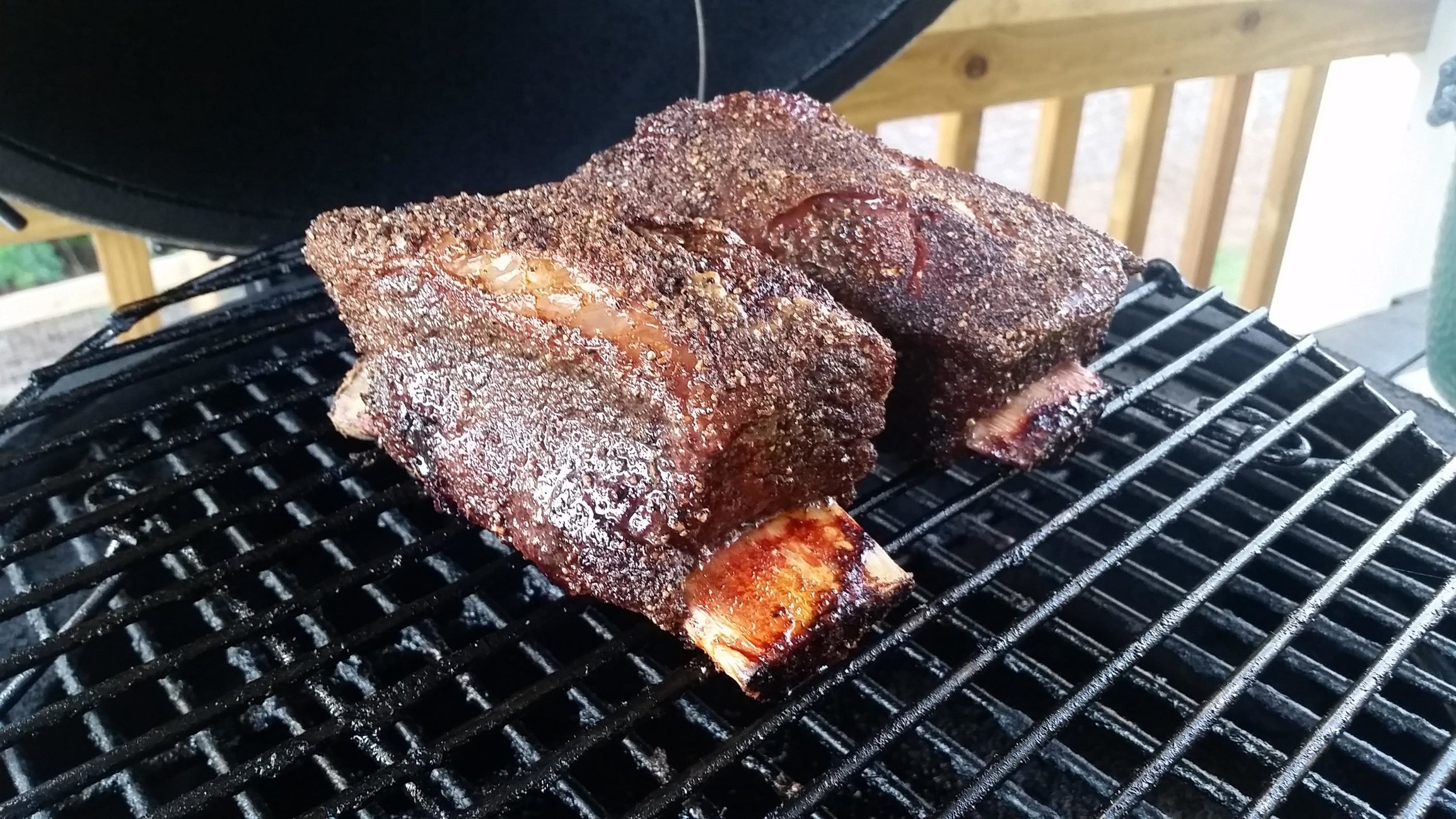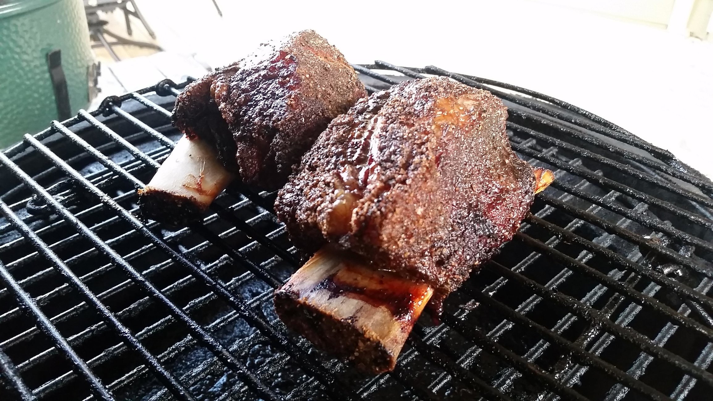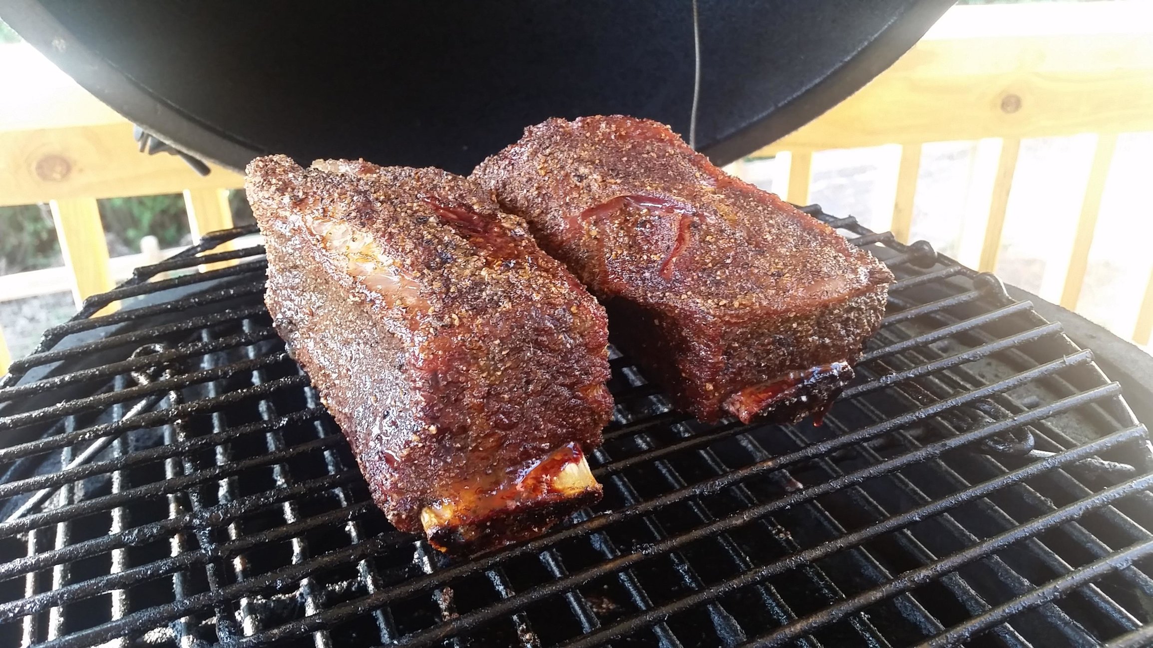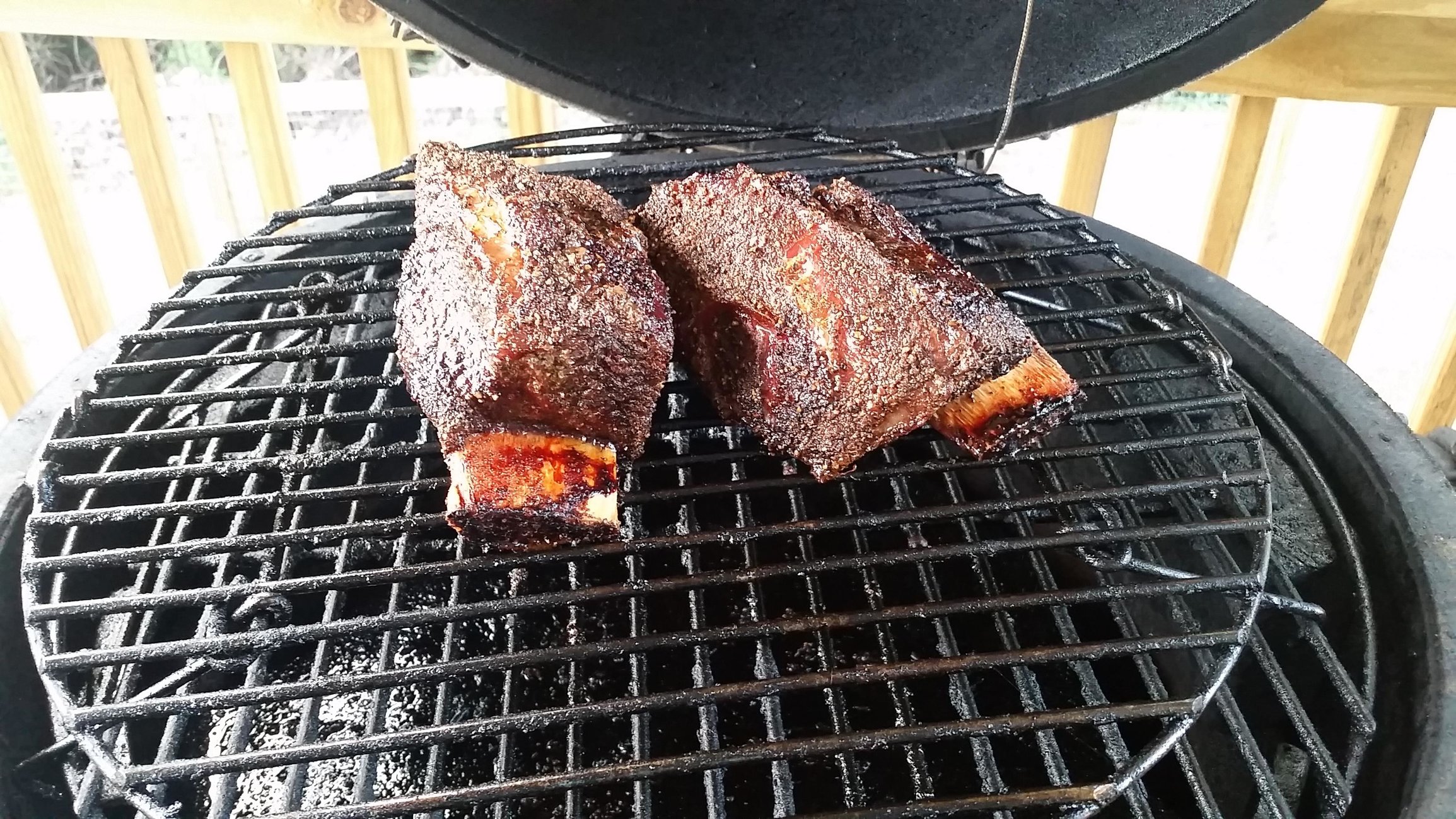 I've never eaten or cooked beef ribs of any kind until this weekend. Butcher had some that were already cut, so I bought 2. Seasoned with DP Cowlick and smoked for ~4 hours with hickory chips. On to the pics...