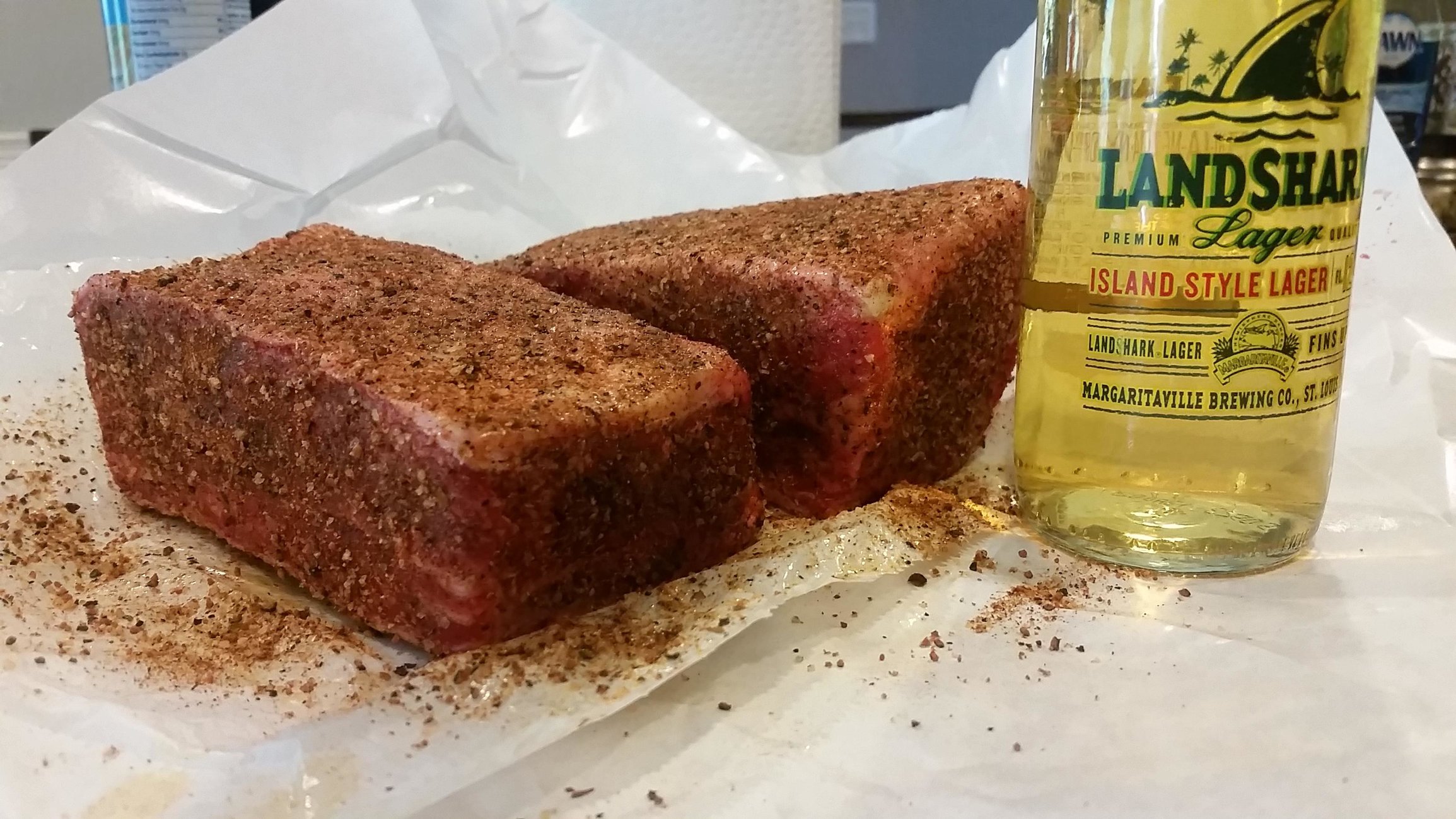 Shown next to a Landshark for size comparison (and consumption):