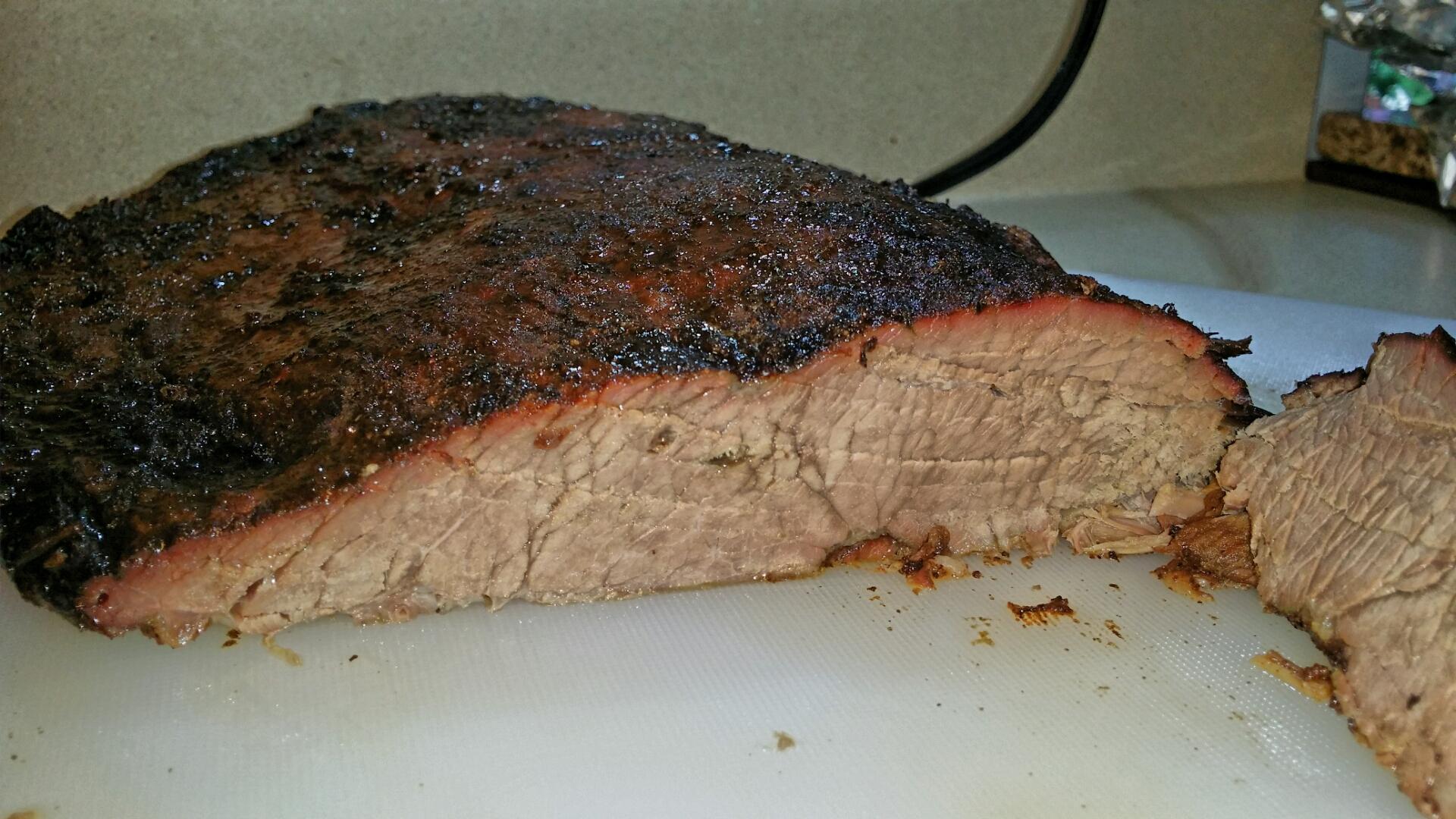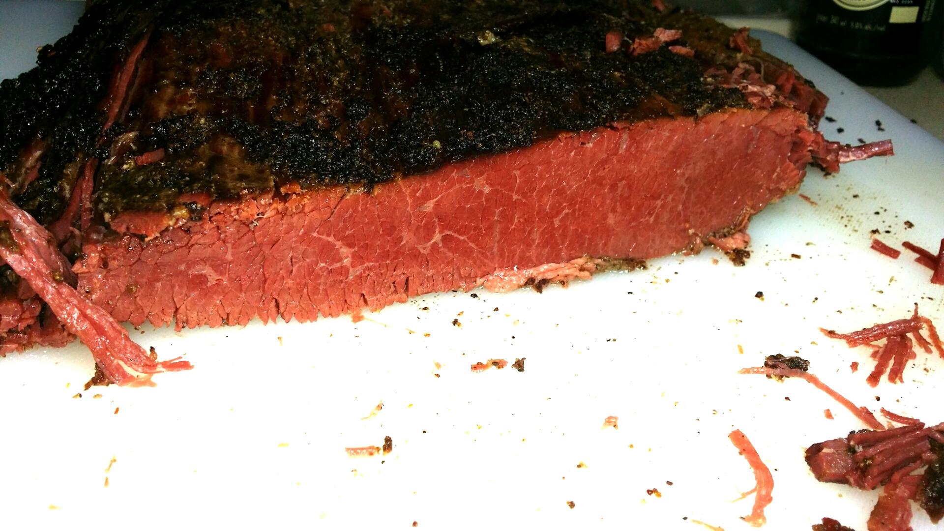 I like the flavor the brisket picks up from the spices in the brine plus that ever so slight salty taste plus the inside colour of the meat looks great.