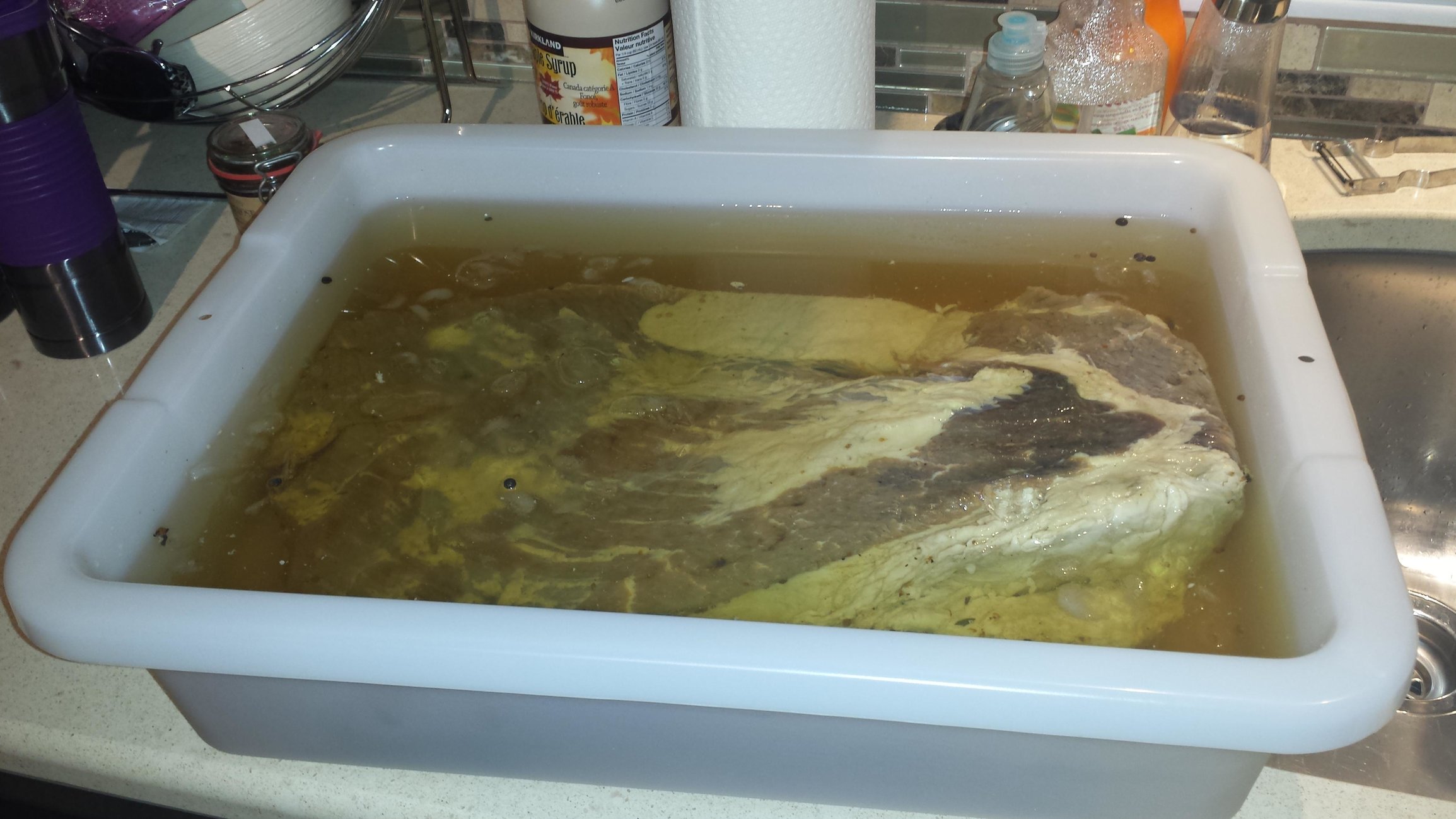 Sorry forgot to add that I used plastic container with a lid. It was pretty simple to do the hardest part is carrying the container and the wait for the brisket to brine.