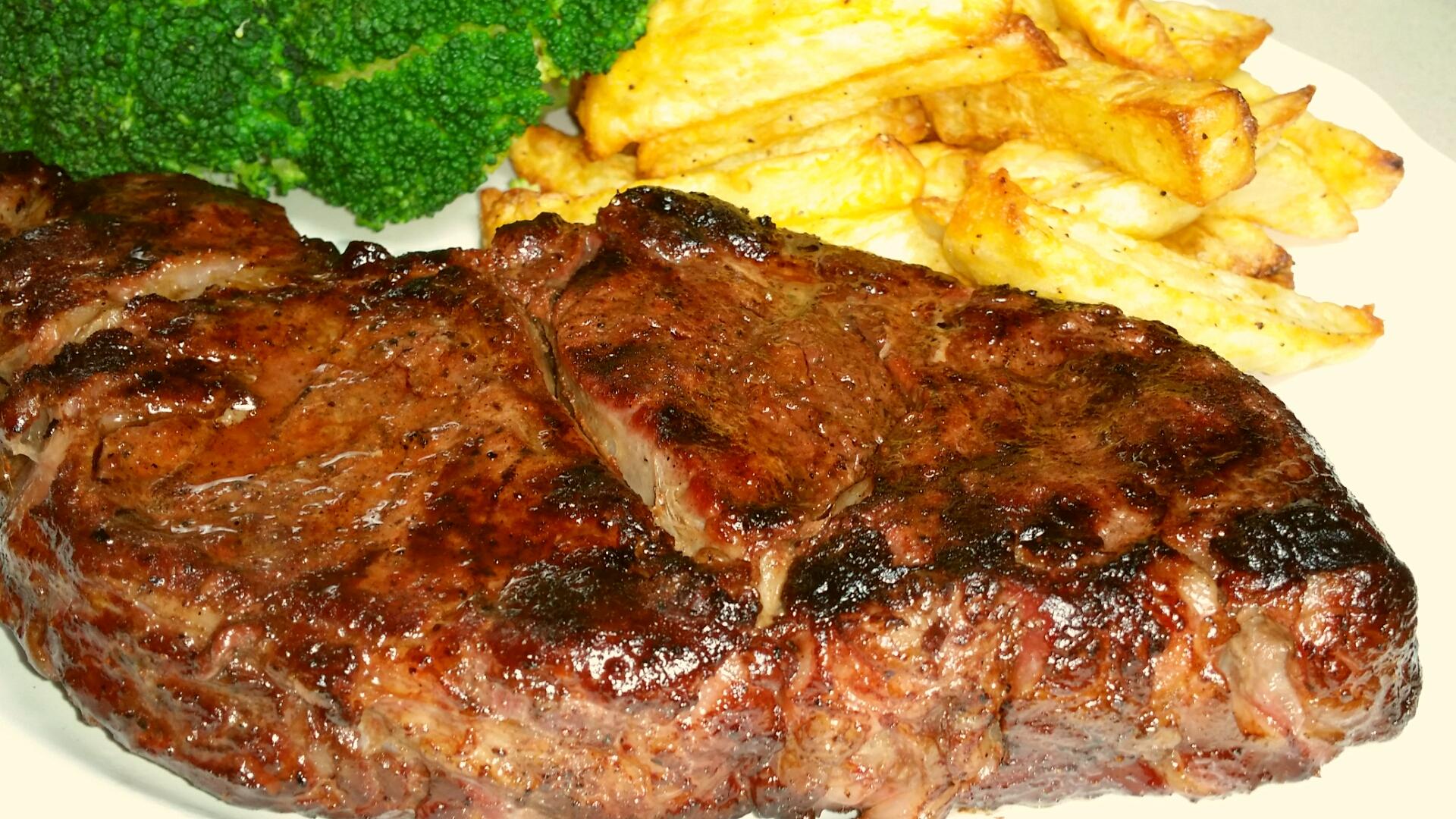 I served the steaks with some veggies and some french fires cookdex in an Philips Air Fryer. The fries fresh just cooked ready for the plate
