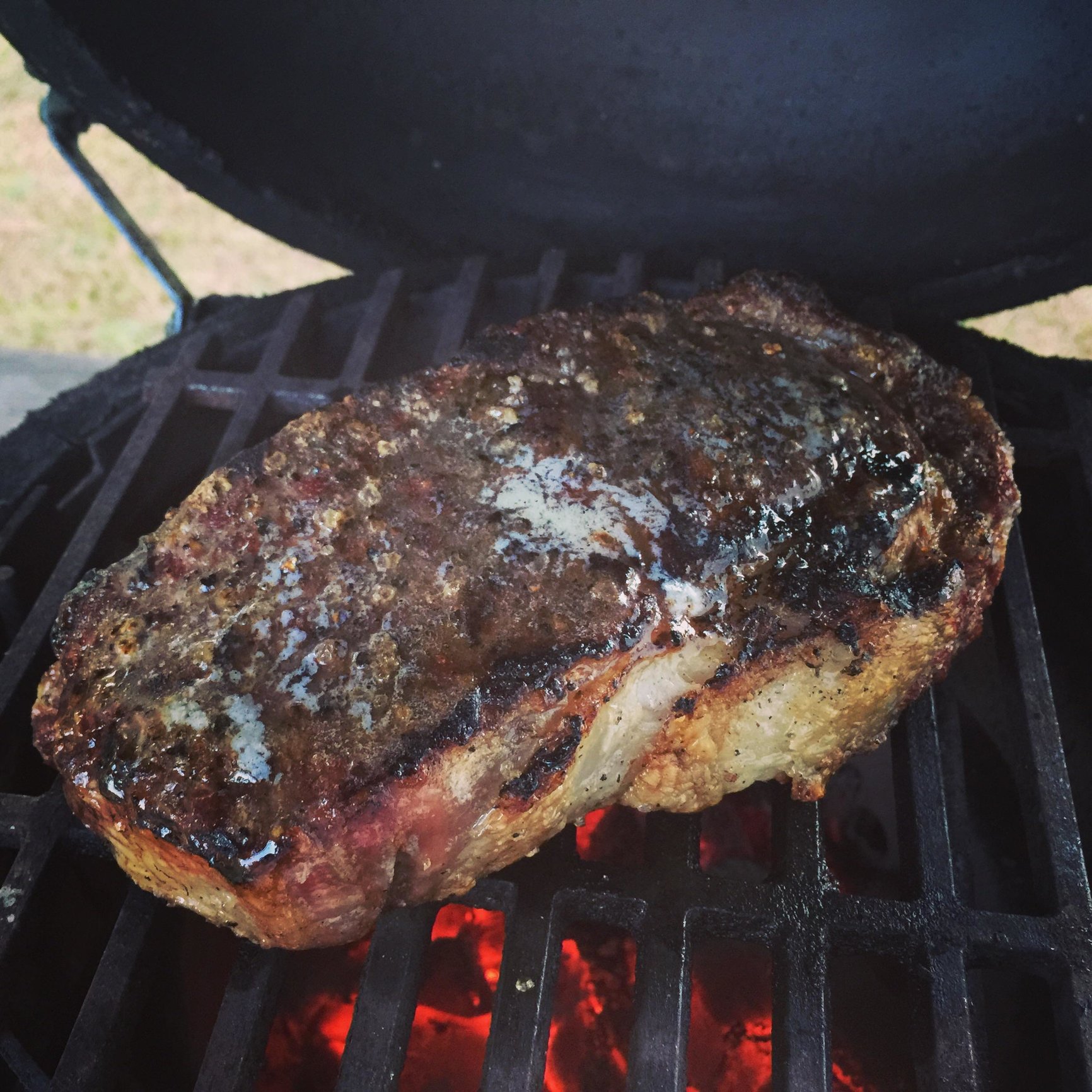 Thx guys! @slovelad , I made a homemade CI grate awhile back to fit on the mini. You can buy them from BGE these days though. I went 700ish dome temp direct until I got a good sear, then went indirect until it registered 115ish internal. Then went direct again and finished with a dollop of butter on both sides until it registered 124ish.