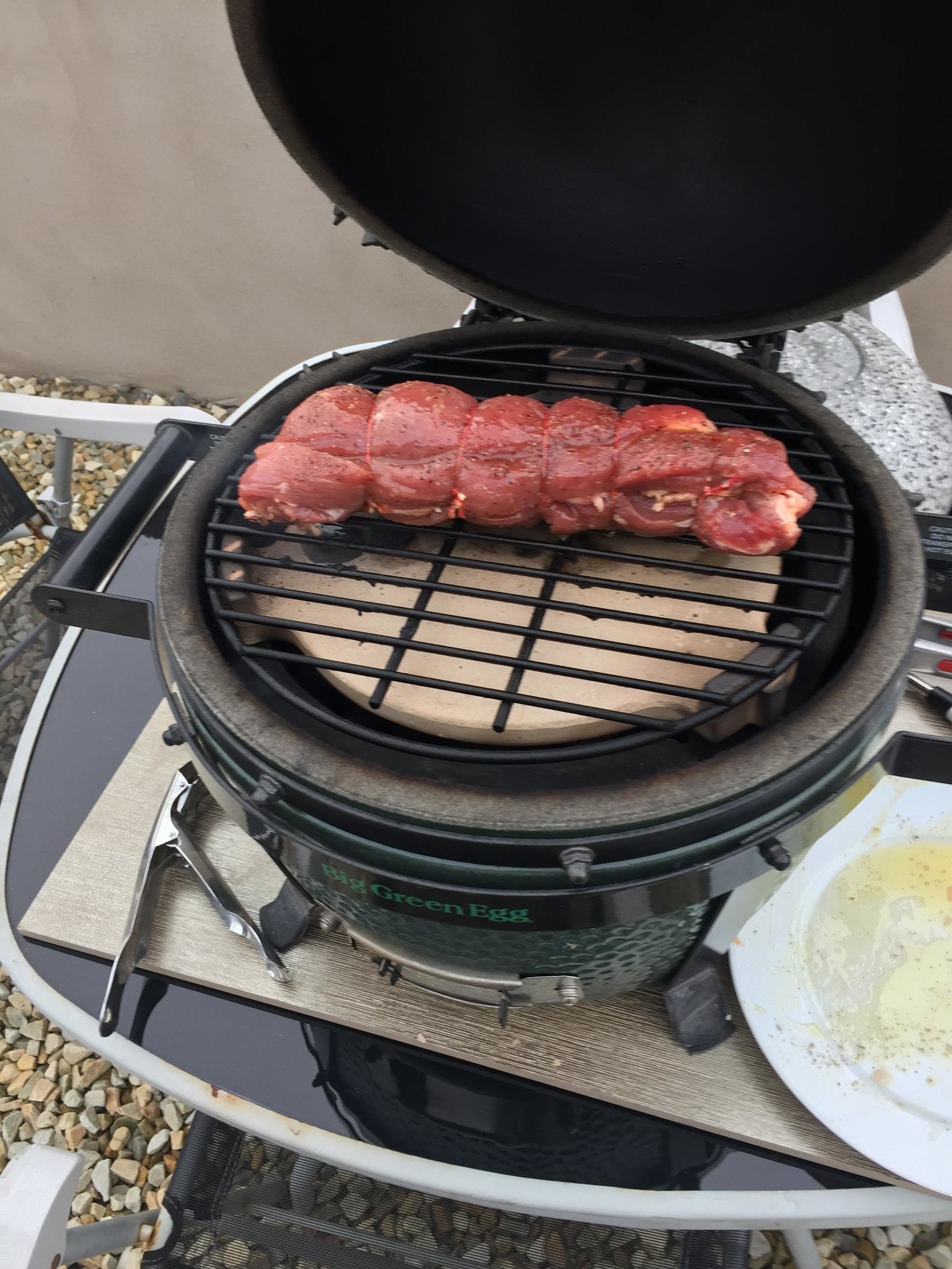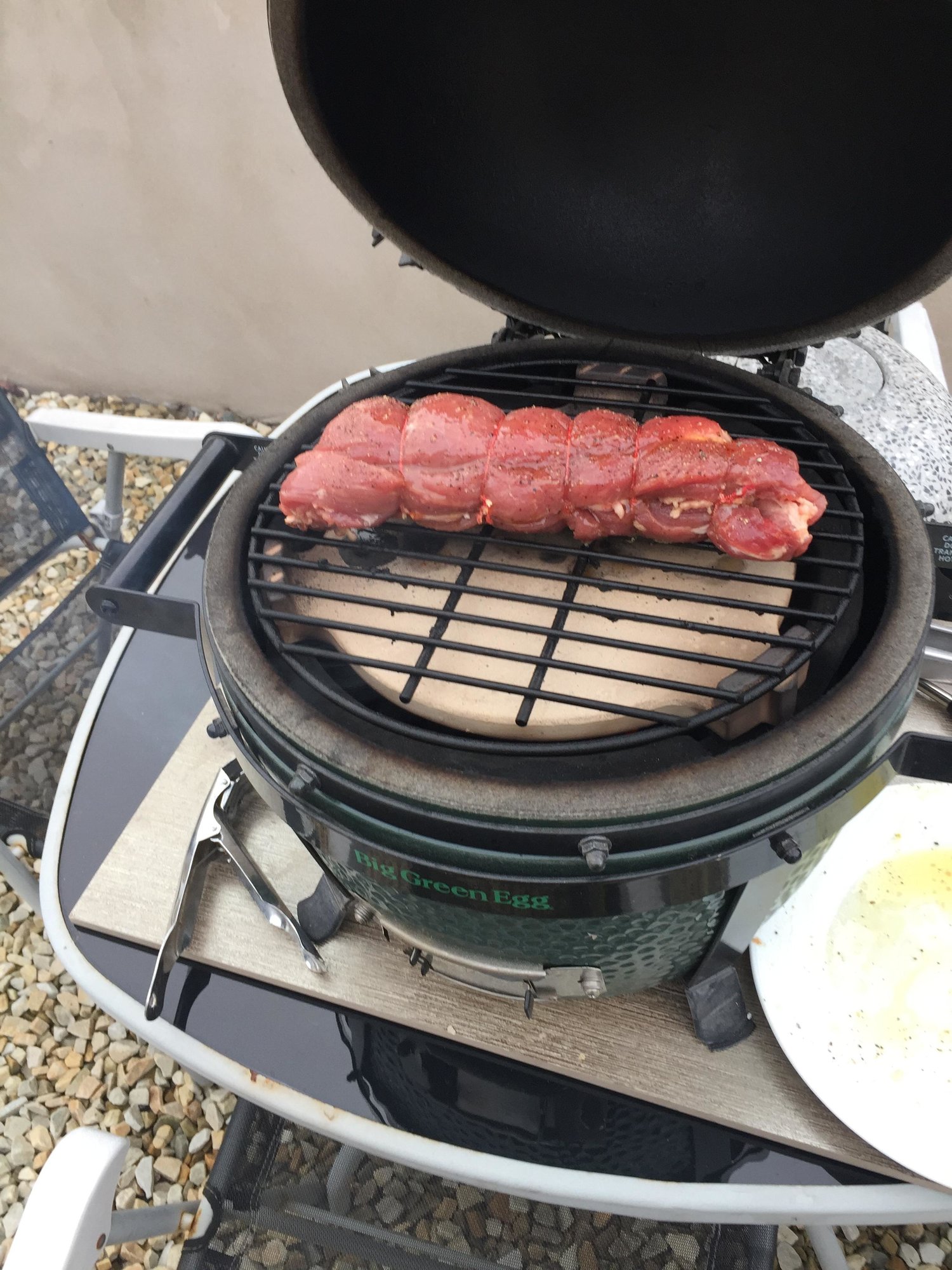 nice and simple stuff pork fillet cooked indirect at 380 for 40 mins them cooked direct for 6 mins direct on mm
