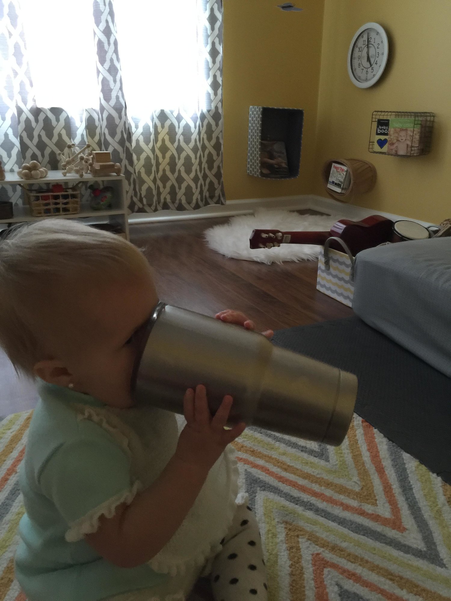@Lit Your little one is legit holding a 30oz Rambler...I'd guess it's 100x heavier than the sippy cups we used when our little man was that age.