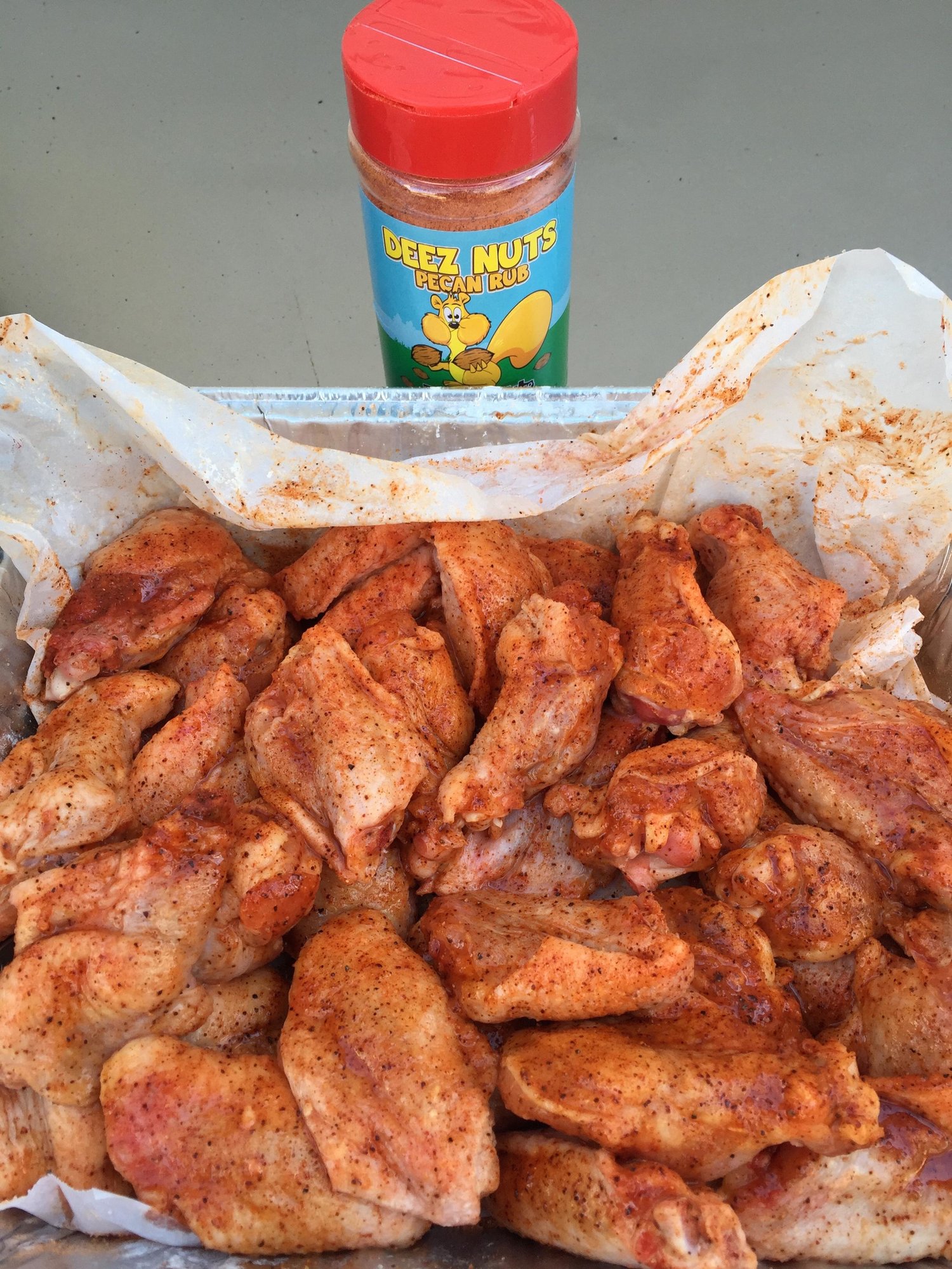 Thanks to the Forum, I did the Corn Starch trick and refrigerated them for a few hours uncovered, then seasoned them with Meat Church Deez Nuts liberally. They sat in the fridge seasoned for another hour or so, then put on the LBGE at 250degrees PS legs up with a drip pan, and raised grill for 2 hours, I used 2 Pecan chunks and 1 Cherry Chunk. The last 15 mins of the cook, I pulled them off and put them in a SS bowl with melted Butter, reseasoned them with more Deez Nuts, and raised the temp of the egg to 450degrees and put the wings back on for a final sear. They were only on at that temperature for 5 mins or so, didn't want to burn them.