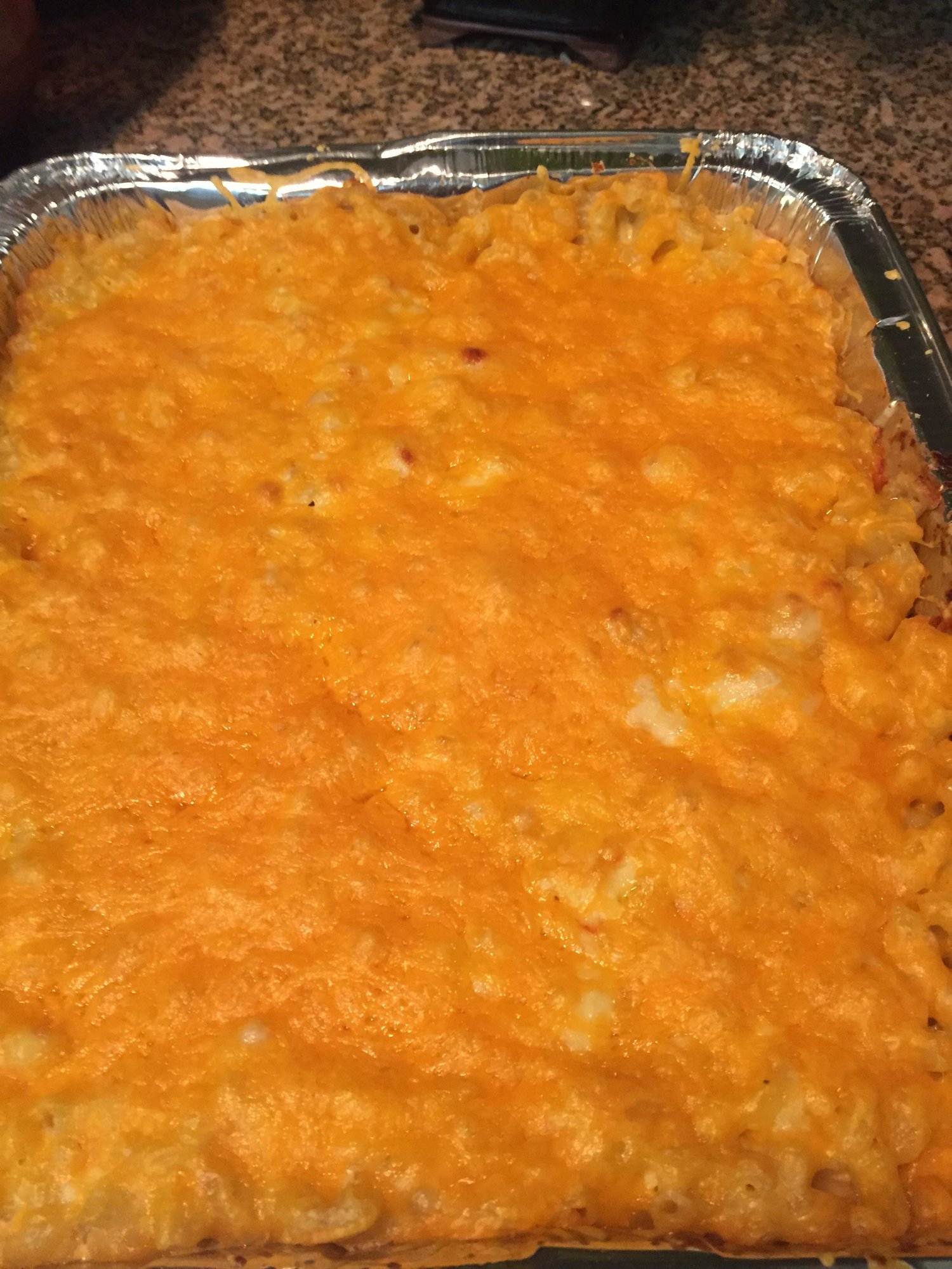 Last but not least... Baked a Mac & Cheese, with smoked Gouda, Gruyere, Muenster, cheddar and Colby jackLarge BGE