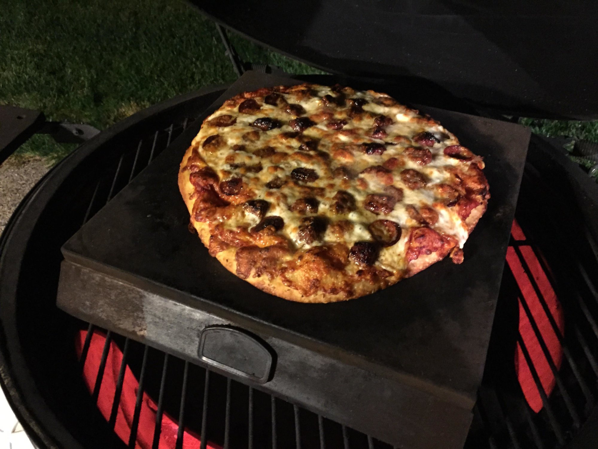 It from William & Sonoma and it's called Pizza Que. You could do the same thing by putting 3 bricks on your grate then your pizza stone, this gets the pie a couple inches above the felt which helps bake the bottom & top and brown them togetherBobh83 said:That looks amazing! I'm new here so would you share details on that pizza stone?Charlotte, Michigan XL BGE -