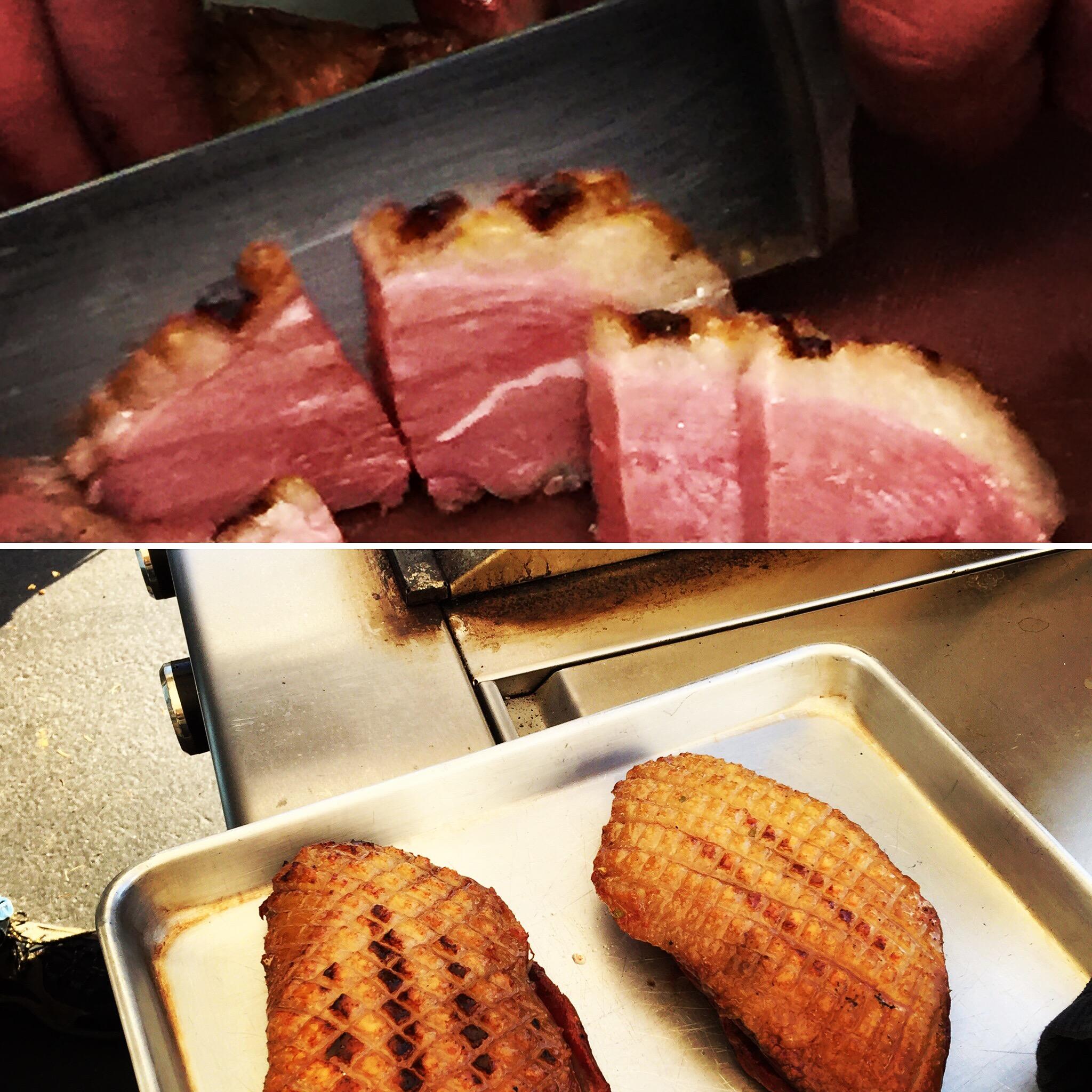 Yes, I am addicted to my Big Green Egg....but even more so, I'm addicted to taking smoking and grilling classes. I attended my 4th class - a holiday smoking class on Saturday. We cooked 86 pounds of meat (prime rib 2 ways, turkey 3 ways, ham, duck), cauliflower, asparagus, cranberries, stuffing, sweet potatoes, quiche, pumpkin pie. Here are some pics.