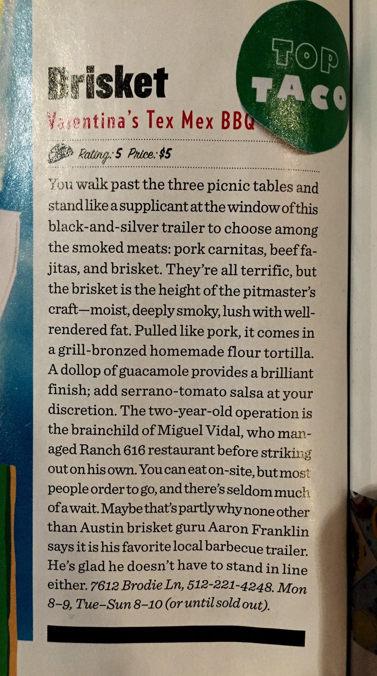 the top taco in Austin is...
