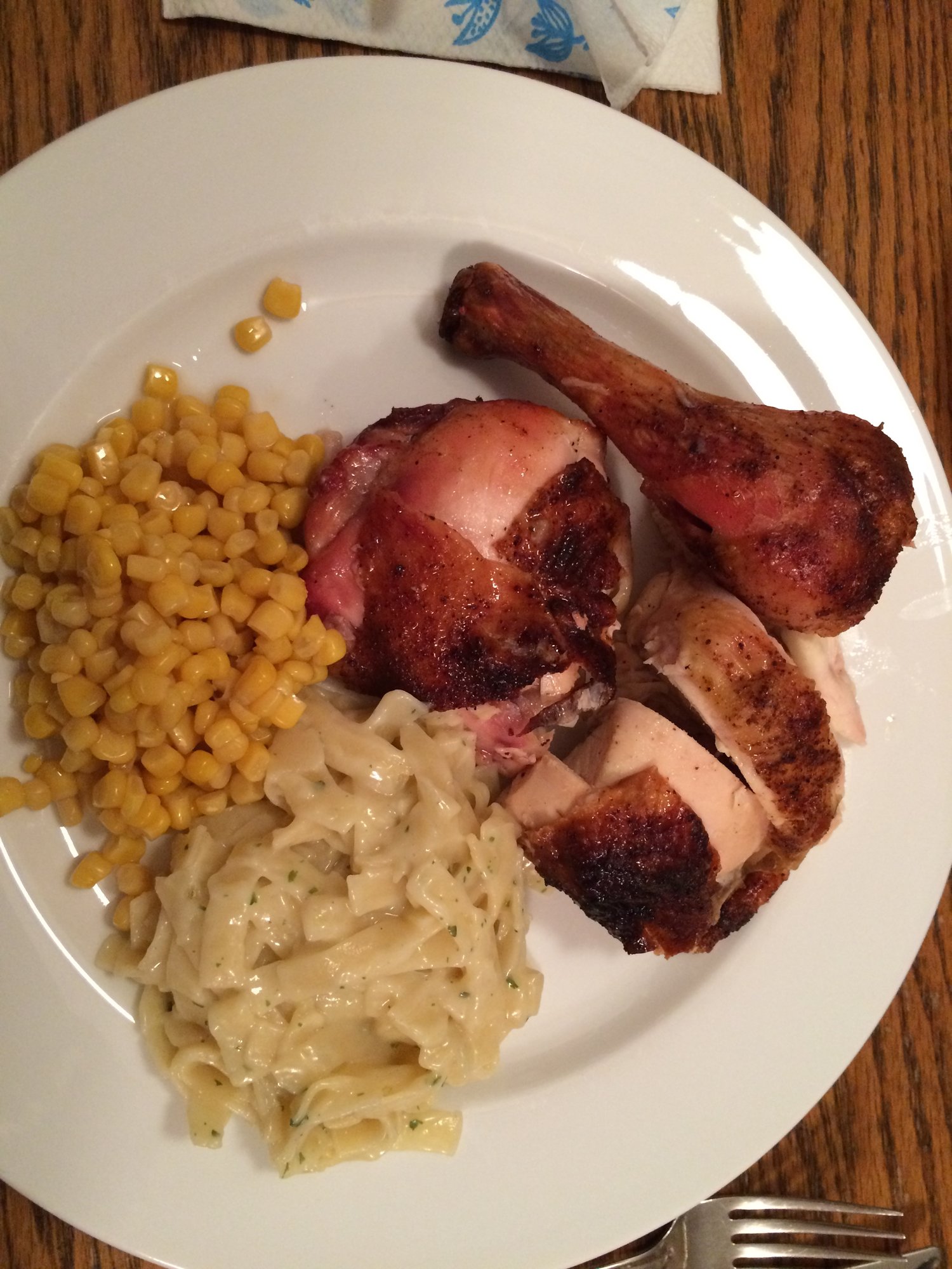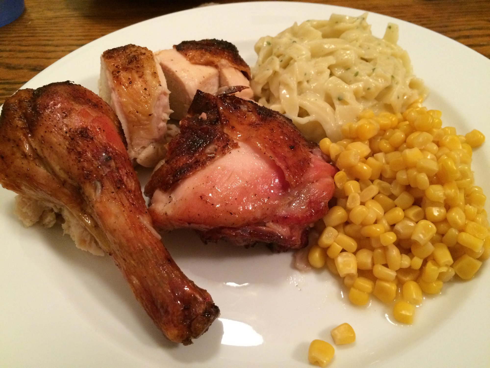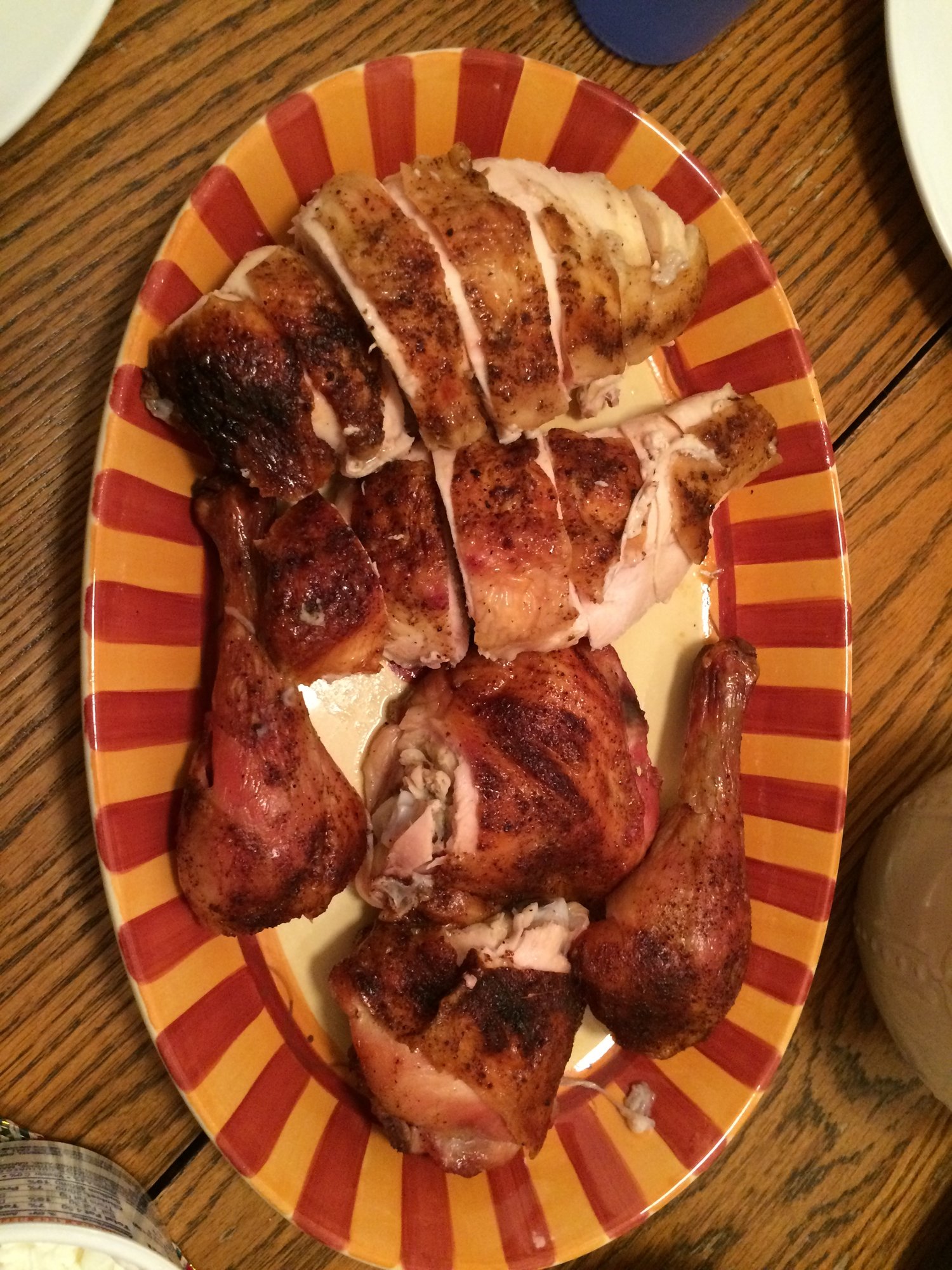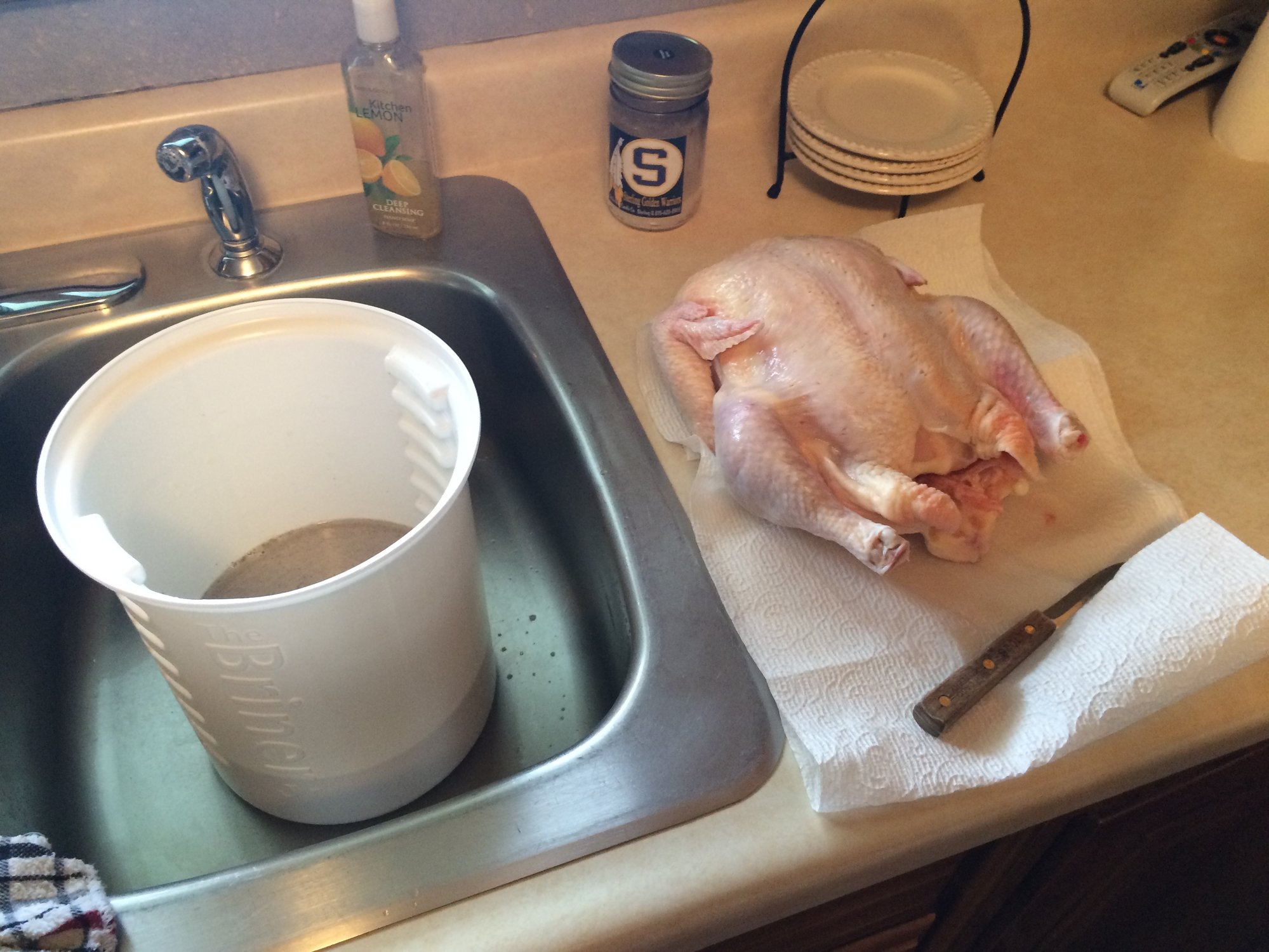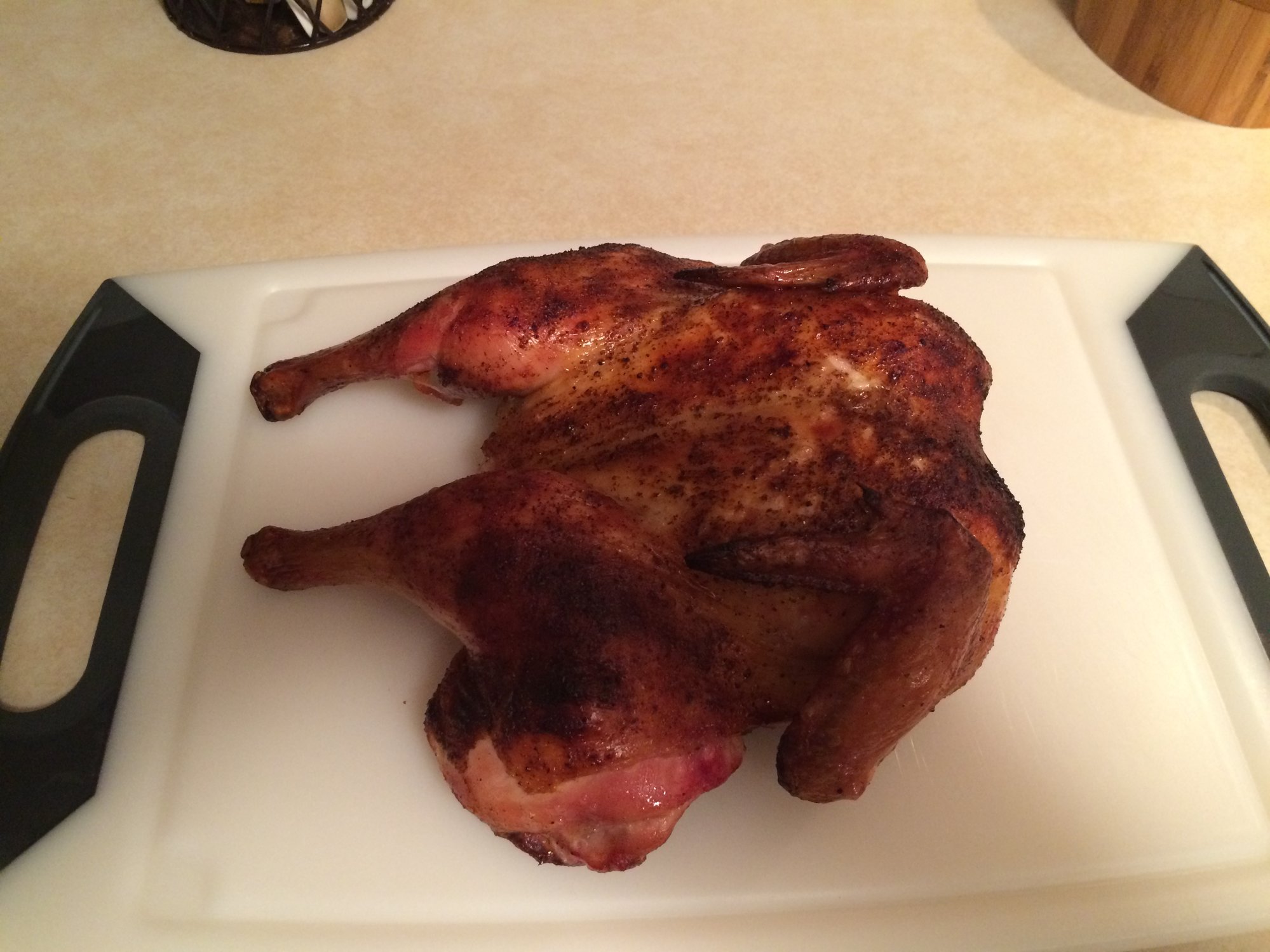 picked up a chicken at Kroger and got it in a brine pretty quickly, but not before I snipped the backbone out. 4 hours in the bath and out it came. Padded the skin dry and used 3 beers rub that was sent to me to try. Indirect @375 for bout an hour and 15 min. Carved it up and served. Turned out great. Skin was crispy even without an extended drying or corn starch. The rub was real good also. I absolutely love the brine packets that come from Briner guys. The spice in the brine just suits my pallet.