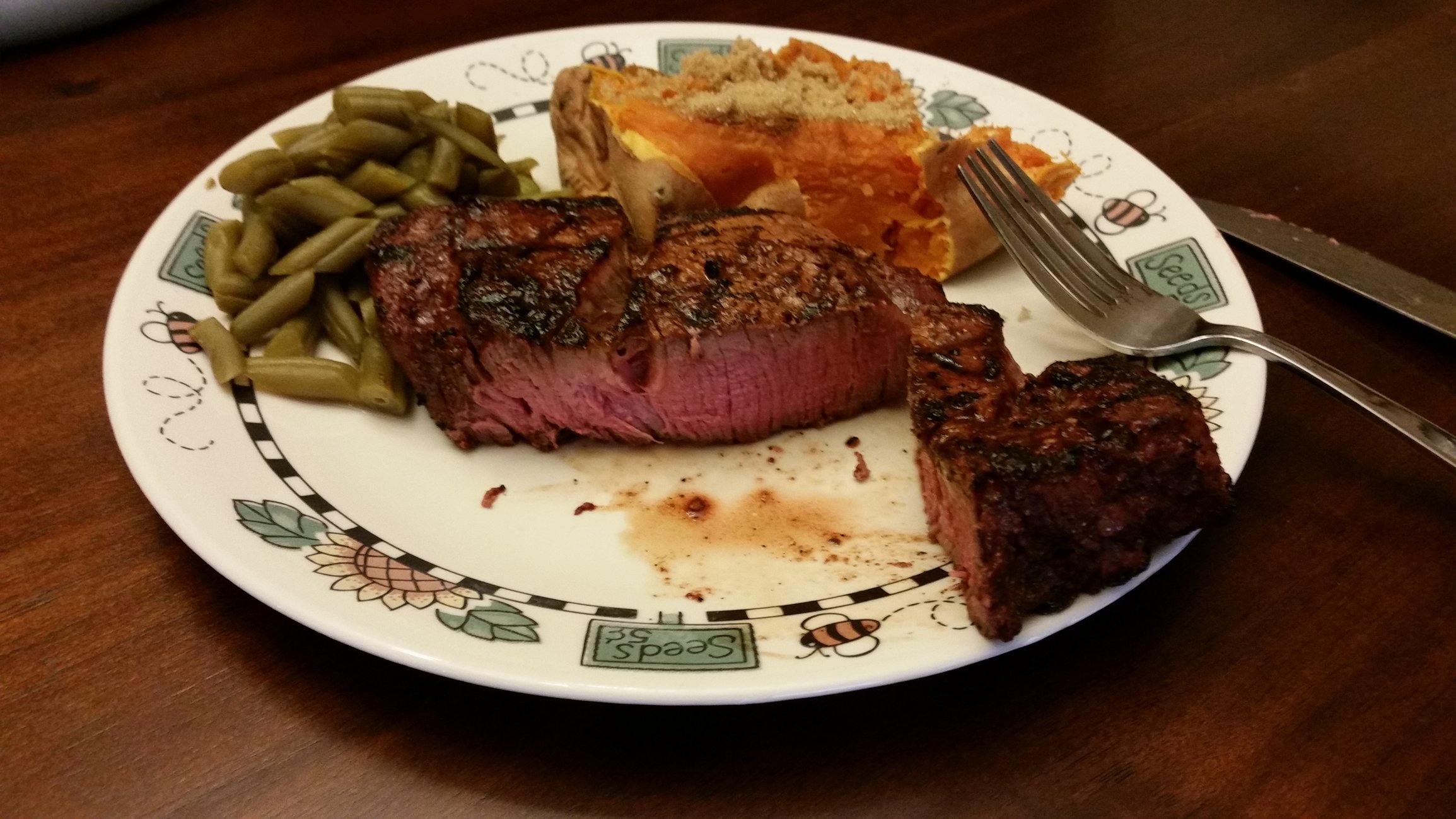 Steak looks good. Can't go wrong with a nice chunk of meat.