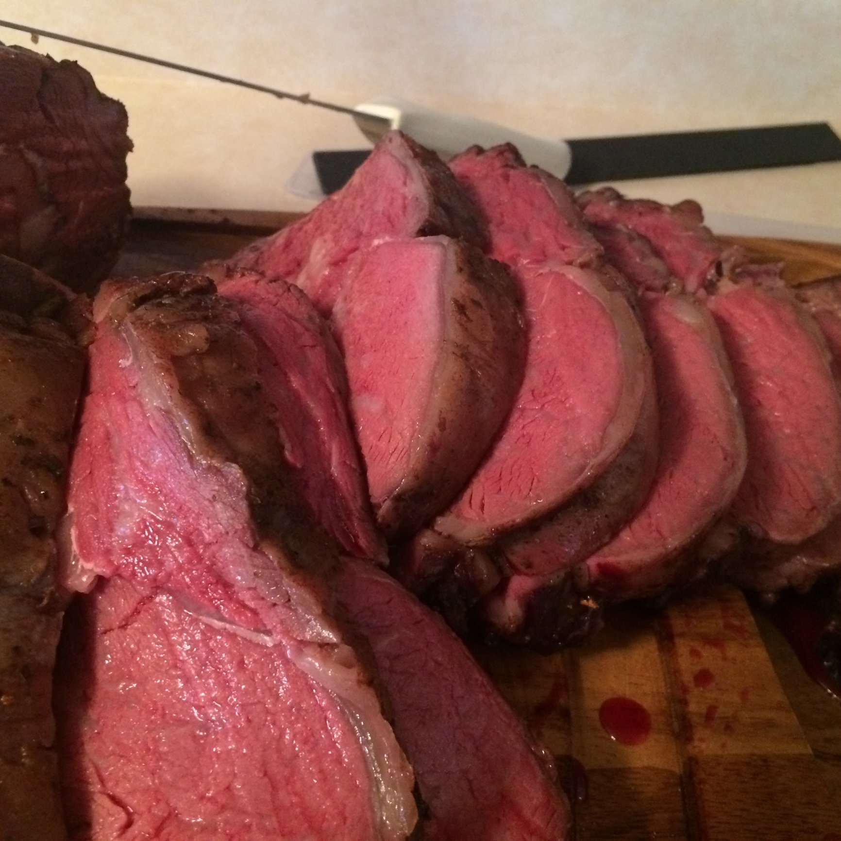 Slow roasted mine @ 250. Was getting done too early, which also is this years theme, so I dialed it back to @ 200. Still got done about 1 hr early. Just took it off and waited. I didn't bother with the sear. Temp was pretty darn good. No pics of the rest of the meal, too busy. We had corn bread casserole, baked taters, asperagus, and horseradish sauce. Merry Christmas.