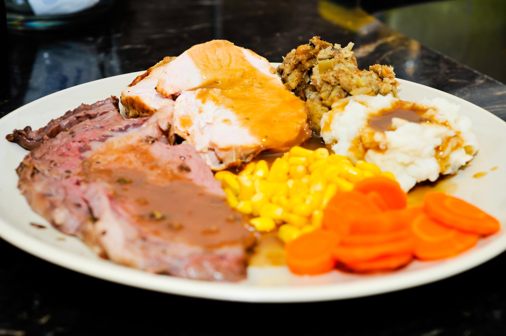 I did a 4 bone angus certified standing rib roast on the rotisserie and 3 turkey rolls.