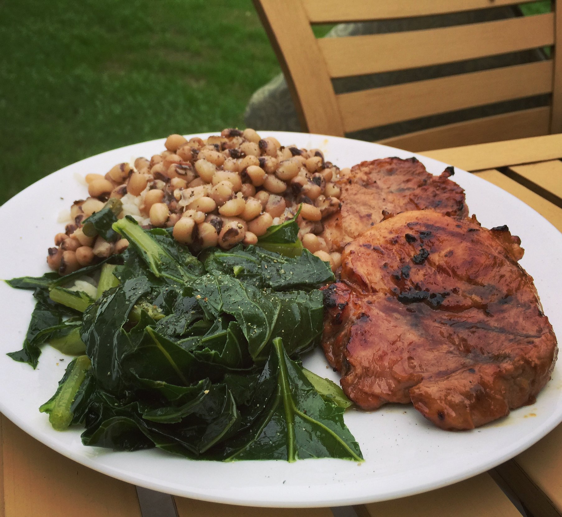 Nice looking New Years meal. We always have BE Peas and collards ( and filet mignon) on New Year's Day. I outdid myself last Thanksgiving and made 30+ Qts of collards so it was nice to break a package out of the freezer this year.Charlotte, NC