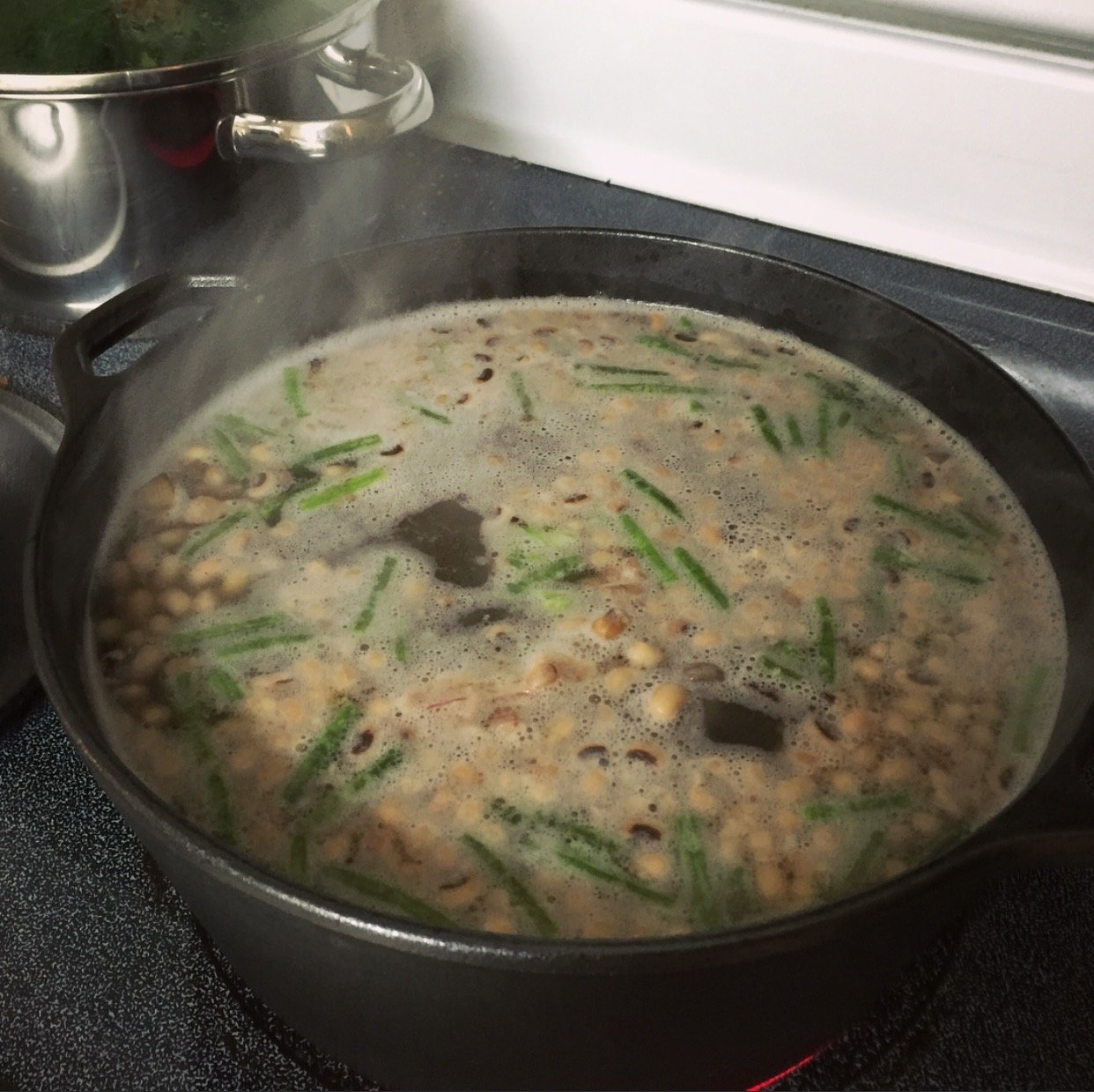 Also had two leftover smoked ham bones in the freezer. The collards got the big one and the peas got the smaller one.