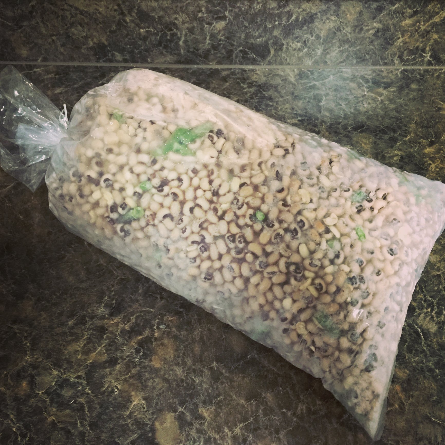 Almost forgot about the bushel of local peas we had in the garage freezer. Perfect timing!