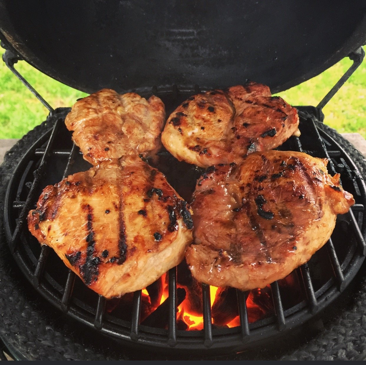 I gave the pork chops a quick and simple teriyaki marinade and threw those on the mini.