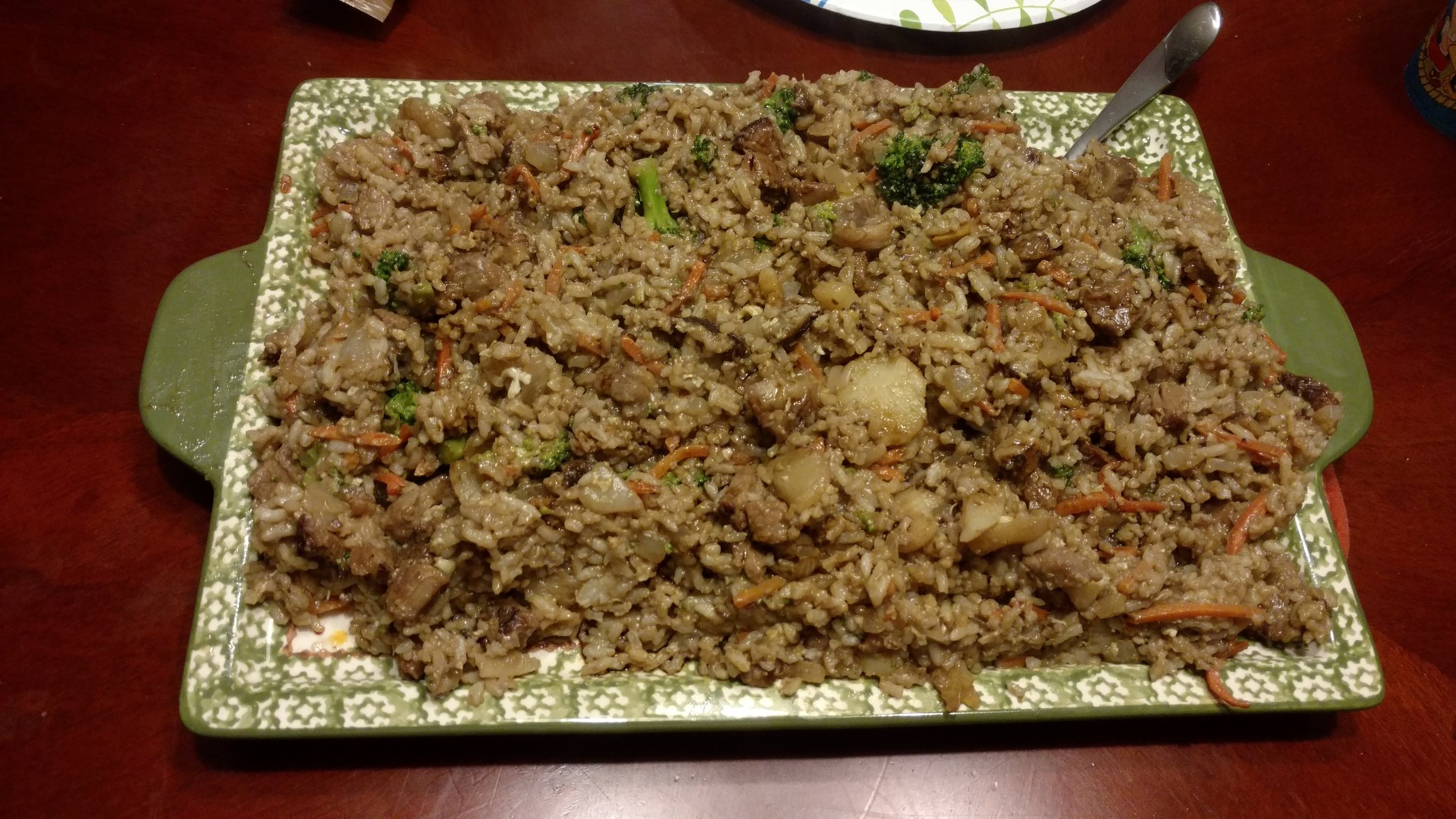 Tonight I used the last of the leftover prime rib from last week and made fried rice.