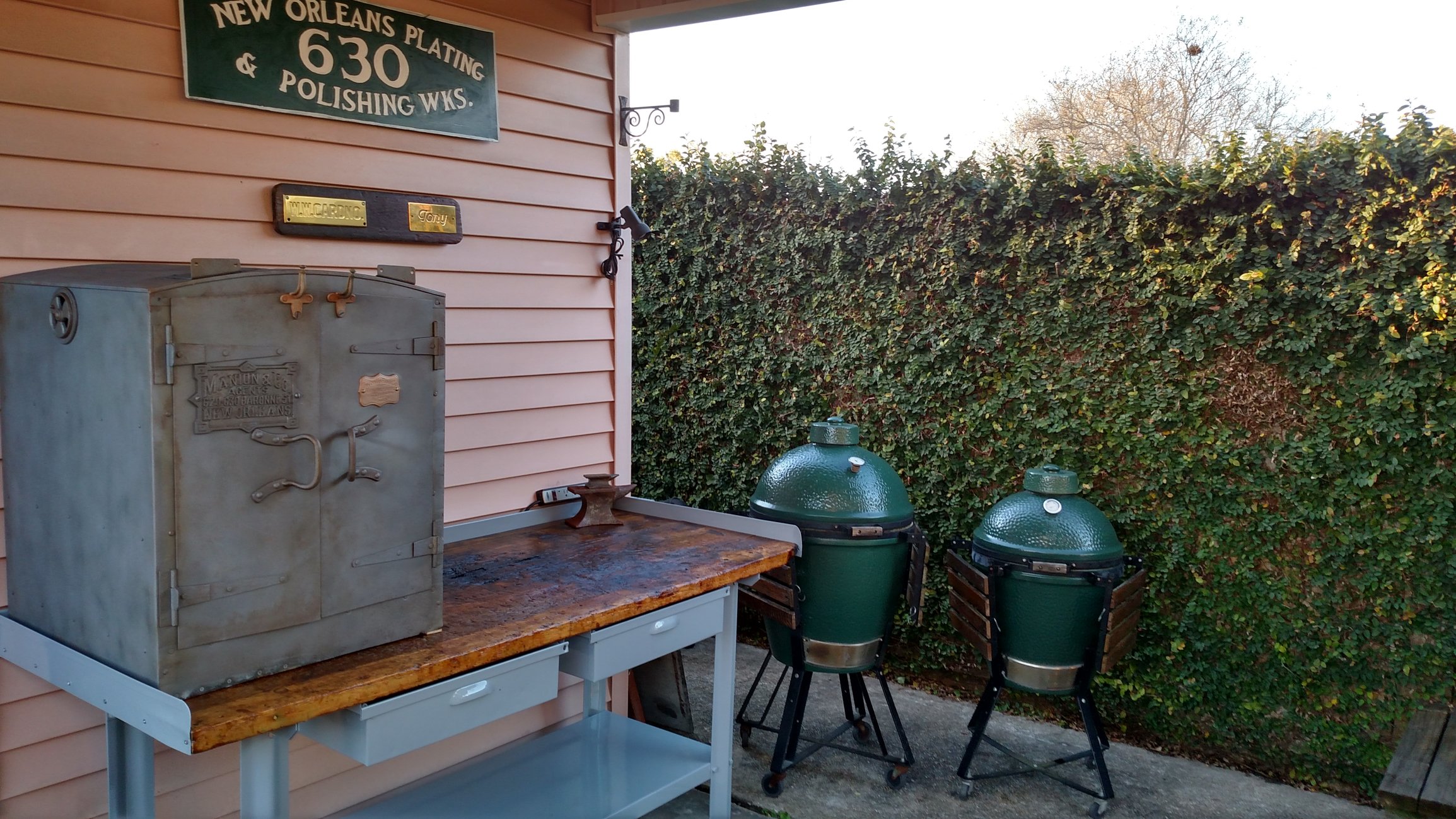 Large BGE & Mini Max for the wok. A few old camp Dutch ovens and a wood fired oven. LSG 24” cabinet offset smoker. There are a few paella pans and a Patagonia cross in the barn. A curing chamber for bacterial transformation of meats...