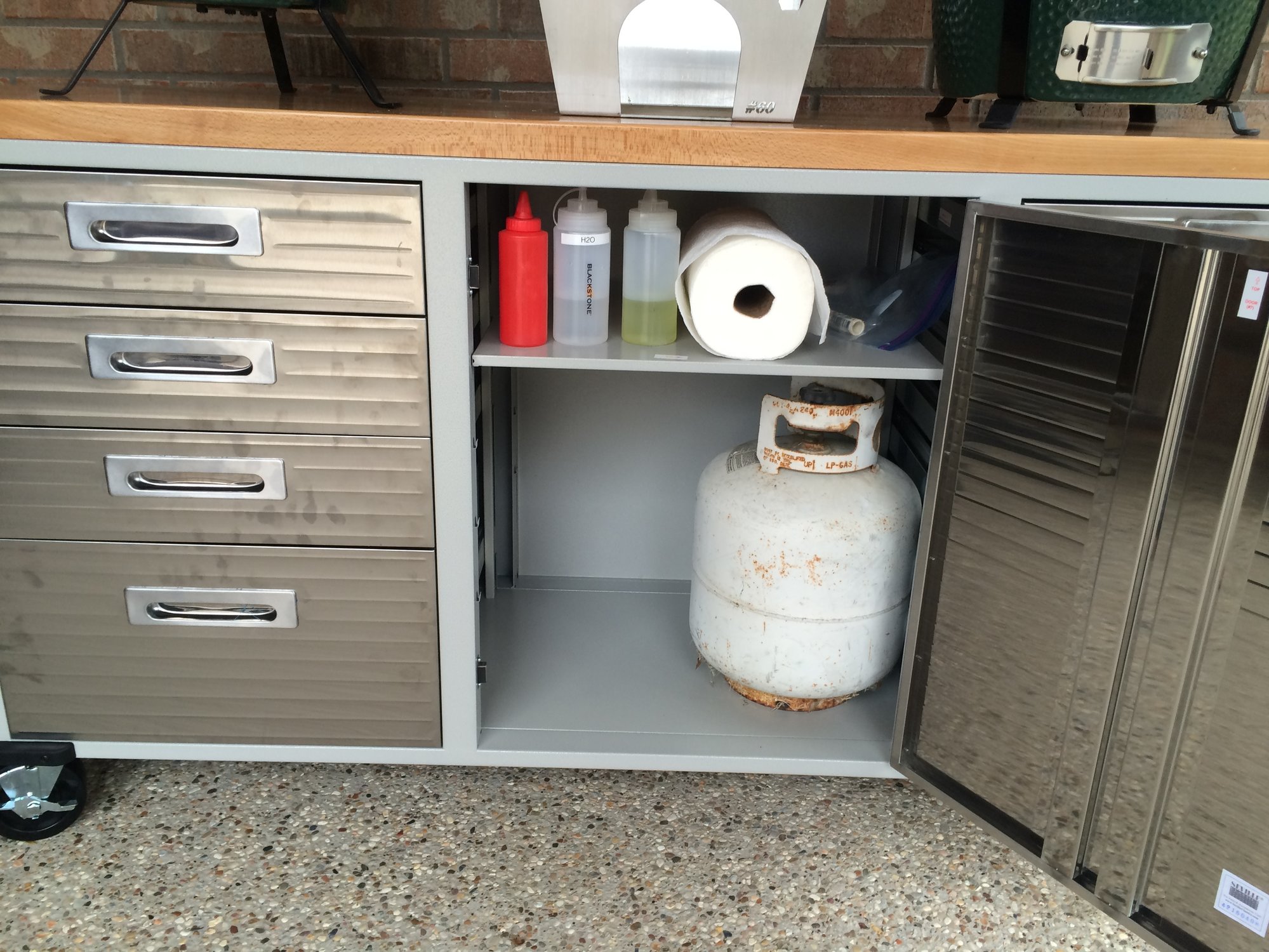 Same here. Careful with the weight on those shelves, though. They're rated for 50lbs, but 20 might be generous.jtcBoynton said:Gloves, tools, pizza stone, platesetter are kept on the table. Other items in a cabinet on my back patio.