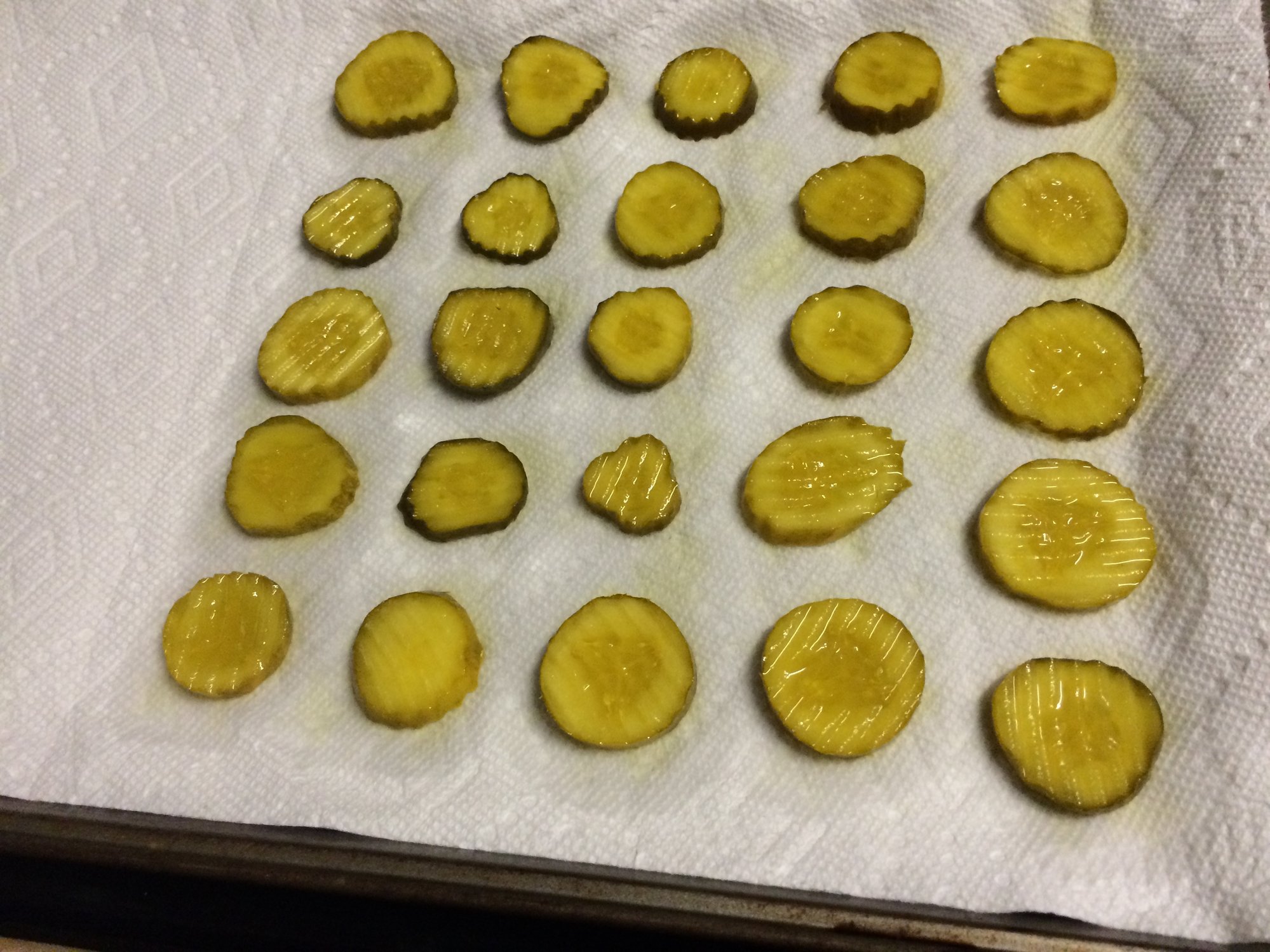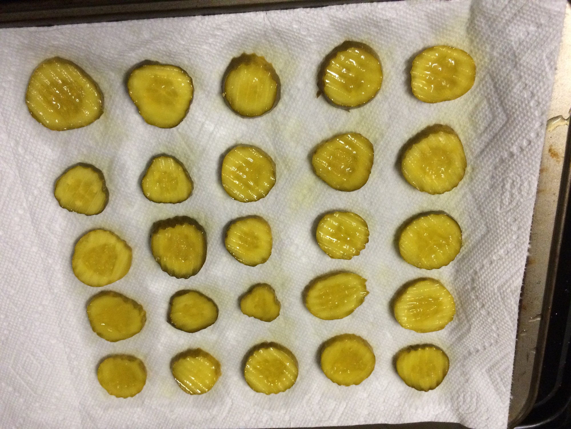 Air drying the pickles so they will crisp up when frying.