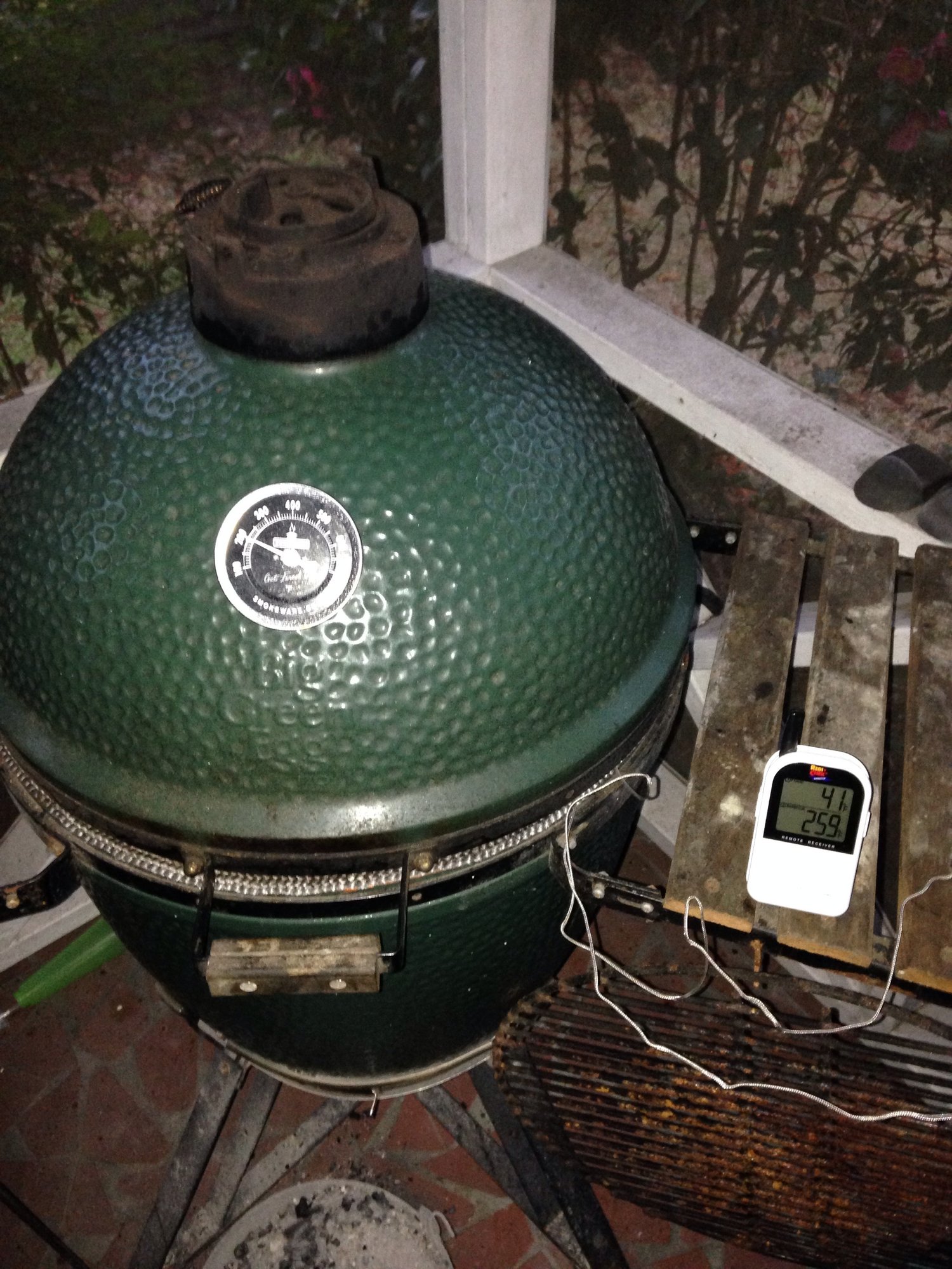 I think having the big chunk of cold meat high in the dome affects the dome temp more than we would expect.   I put a turkey on a raised grid and coul