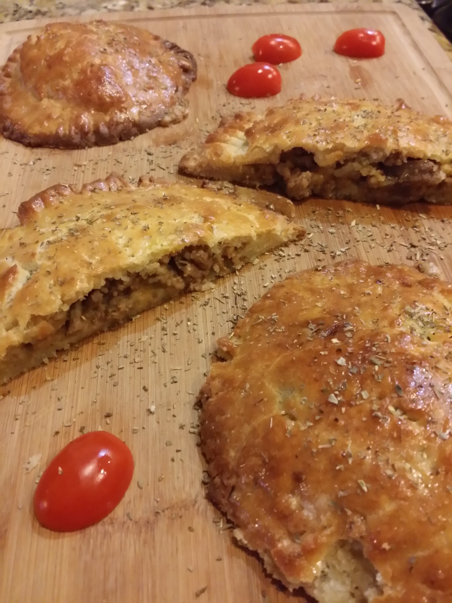 Ground turkey and cheddar cheese empenadas made with gluten free pastry dough.