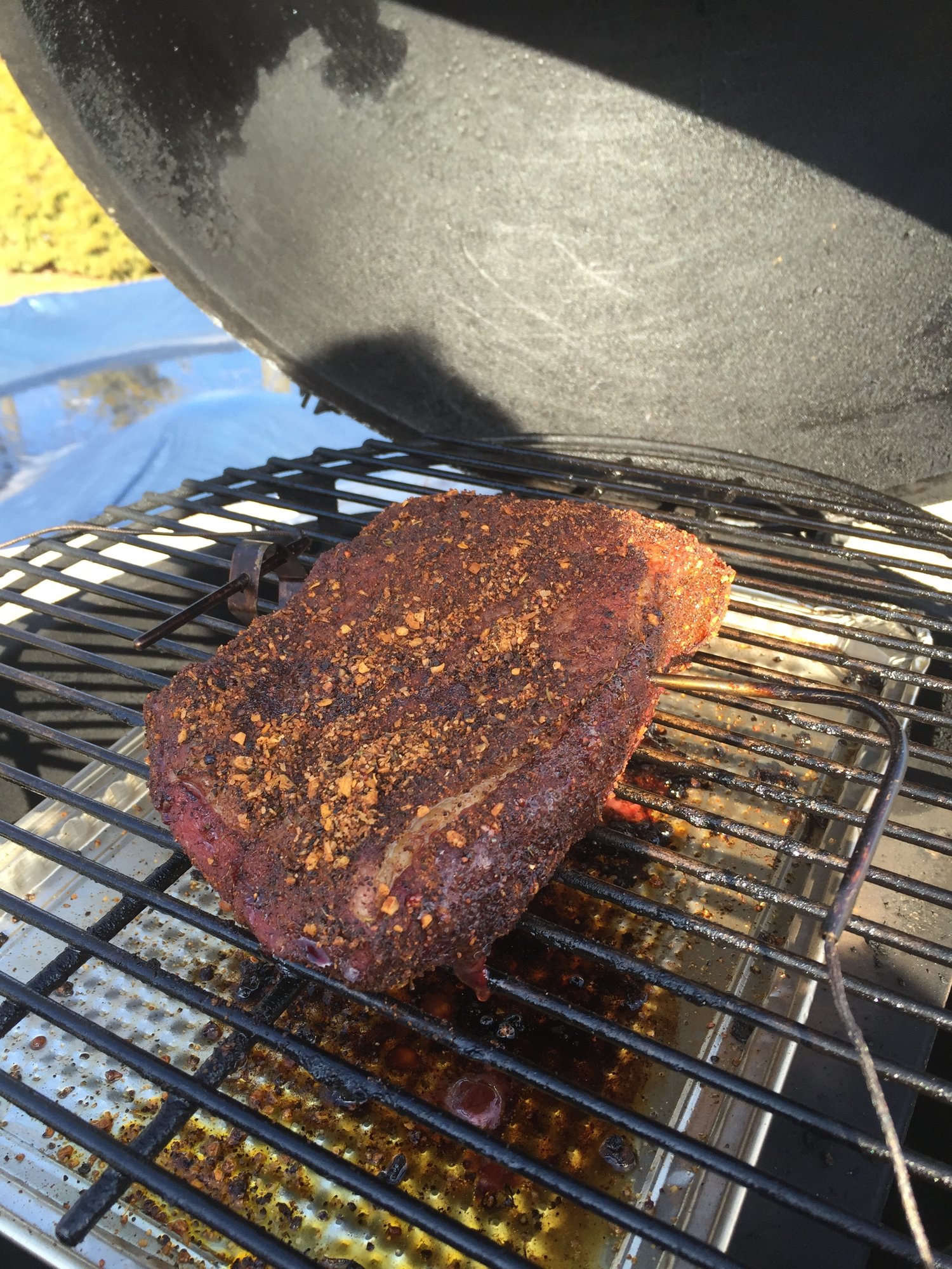 Well it is done. Not as tender as a whole packer smoked on the egg for 15 hours but the flavor was there and fork cut table. Overall a good cook. I got to use the egg the first time in 3 months so that was good.