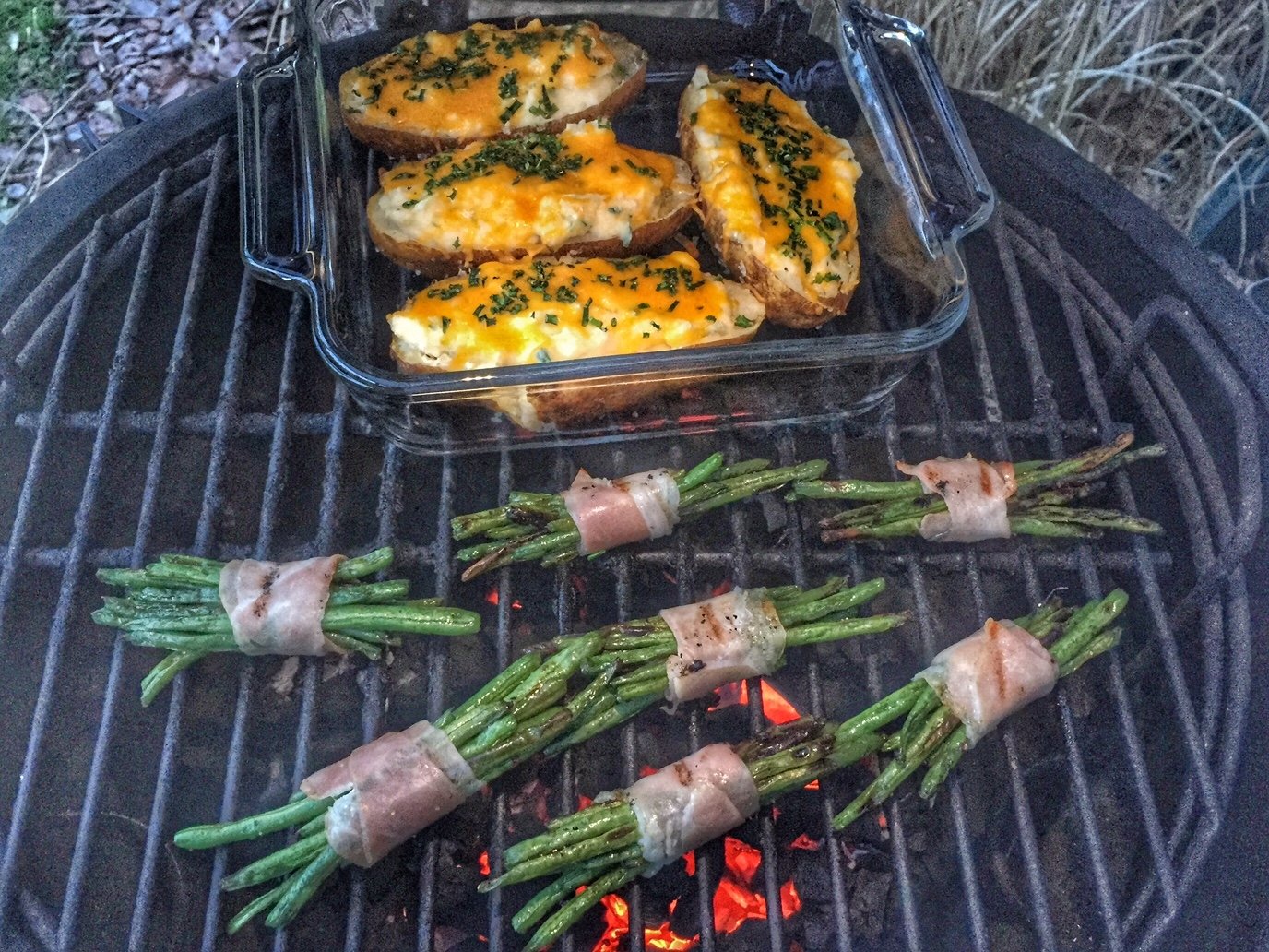 The large had the potatoes until ready to turn into twice baked potatoes and haricot verts wrapped with perscuitto