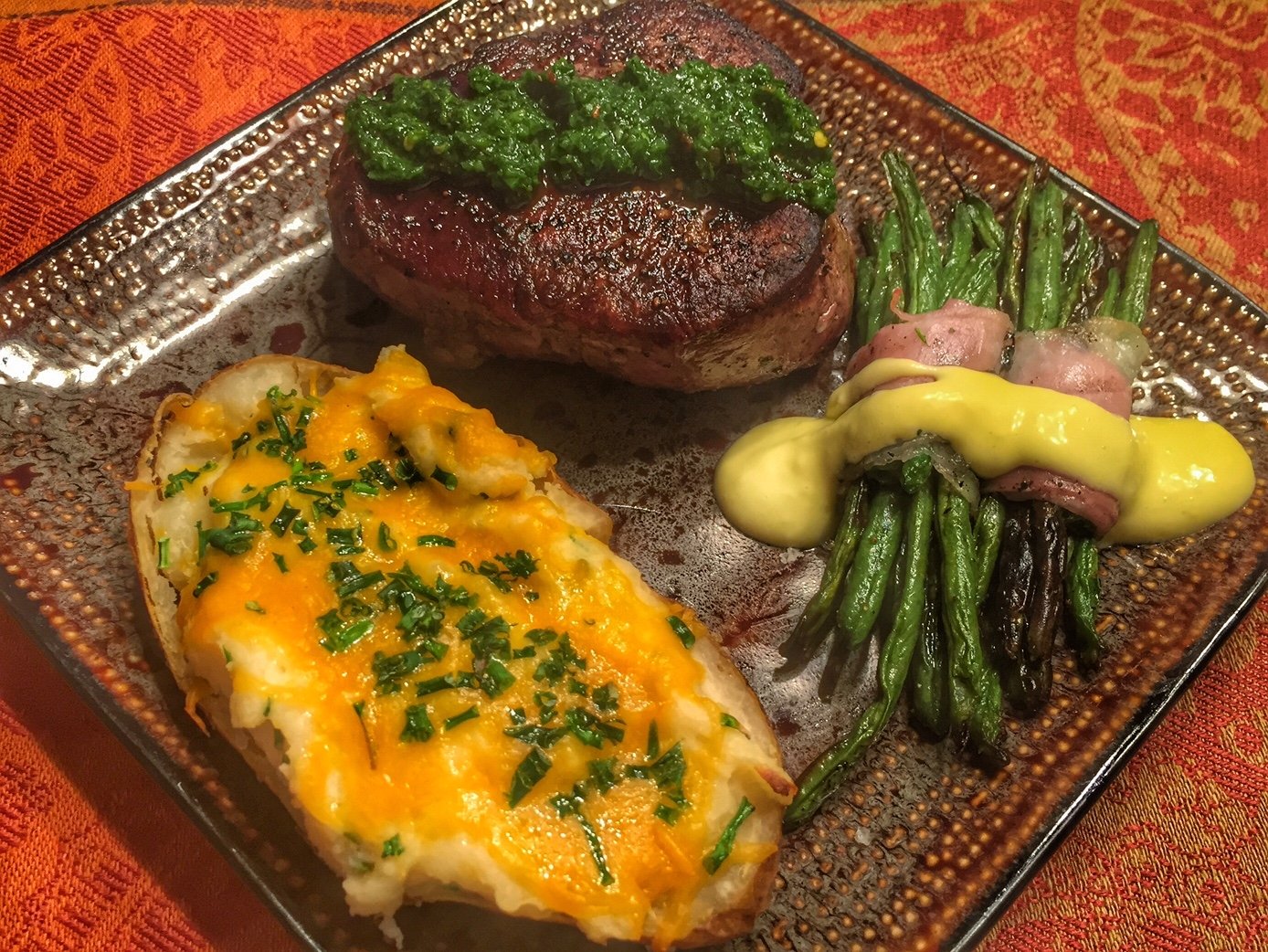 And plated with a  chimchurri for the beef and a lemon aioli for the beans