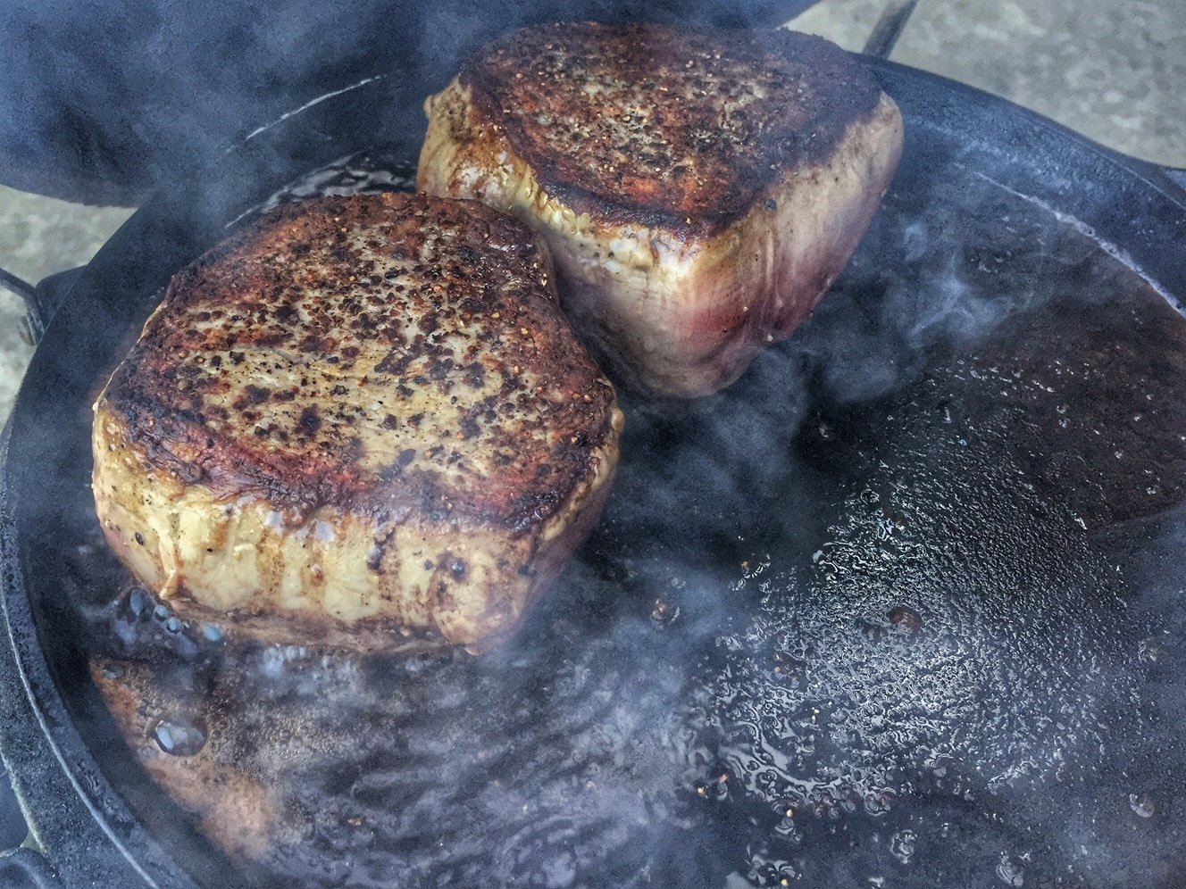 As the story goes.  The mini is on searing duty with 2 11oz filet mignon