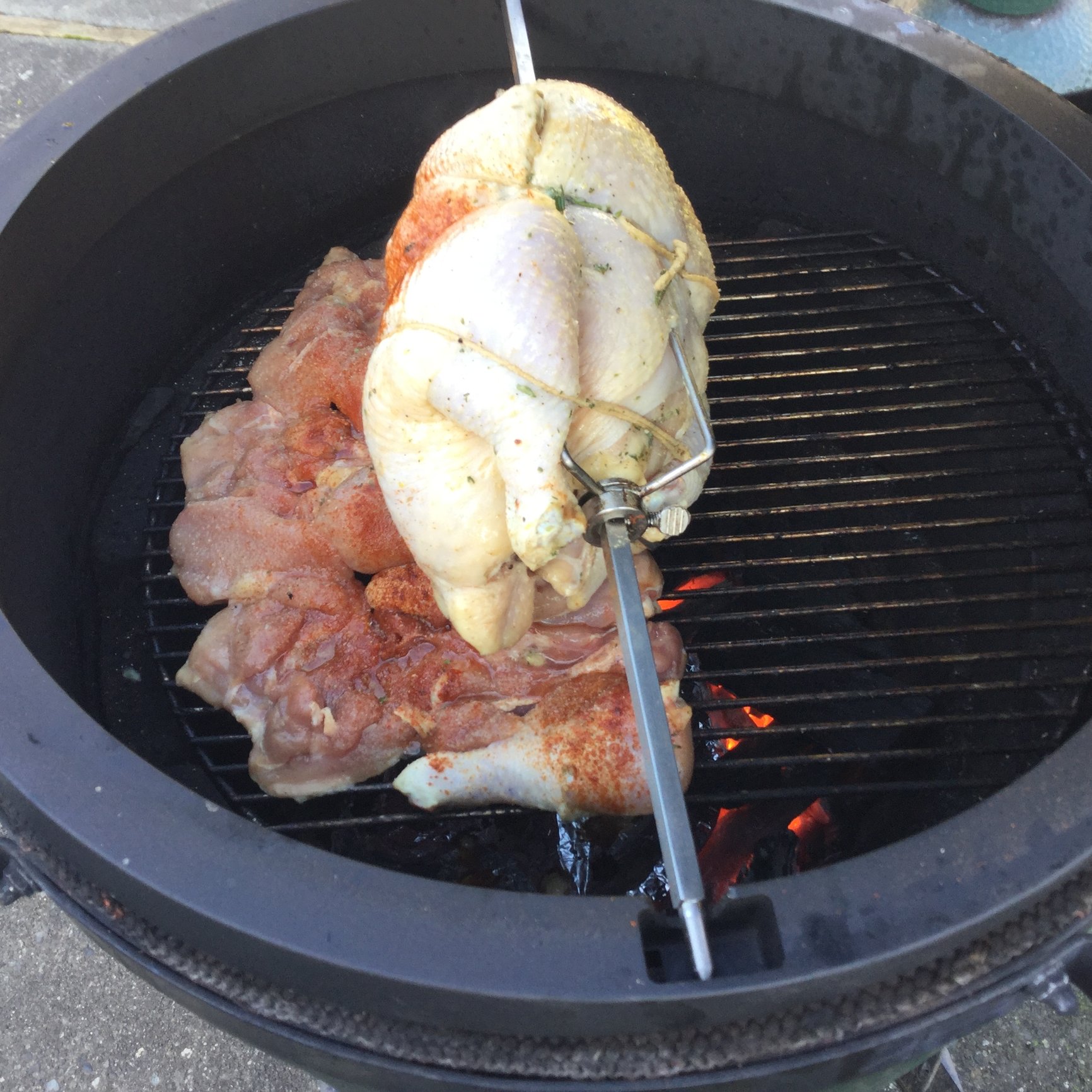 Your gonna keep posting about this thing until I wind up with one..I'm weakDredger said:Decided to try two chickens on the Joetisserie. One for soup and the other for whatever. Turned out fantastic, as usual. Loving this eggcessorie.